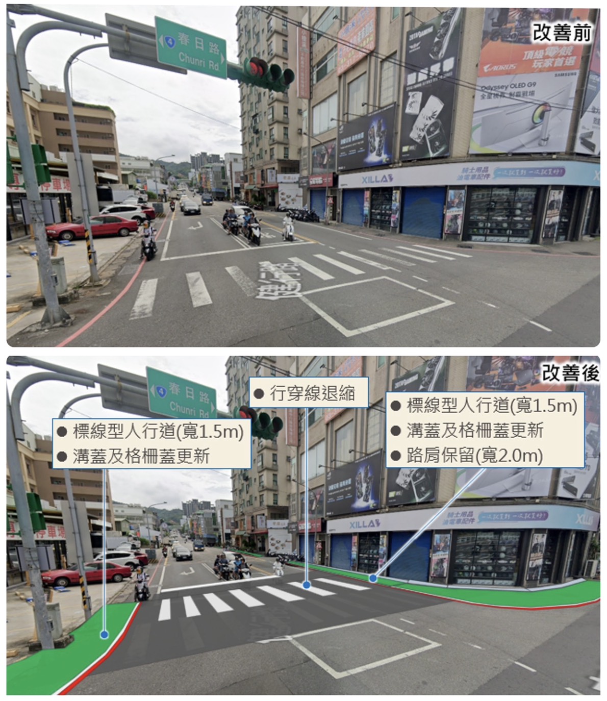 ↑健行路(春日路~大業路二段)新設標線人行道示意圖