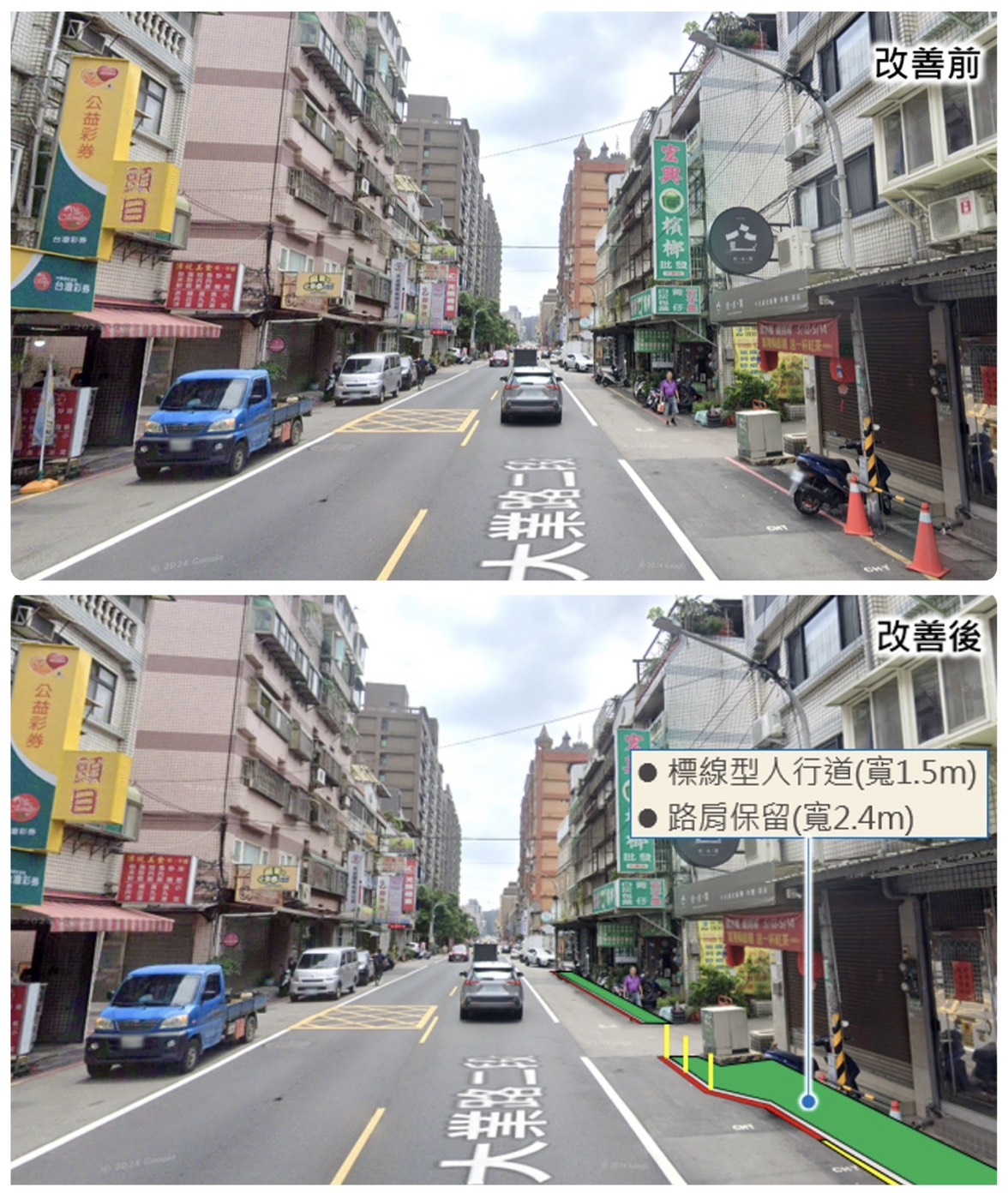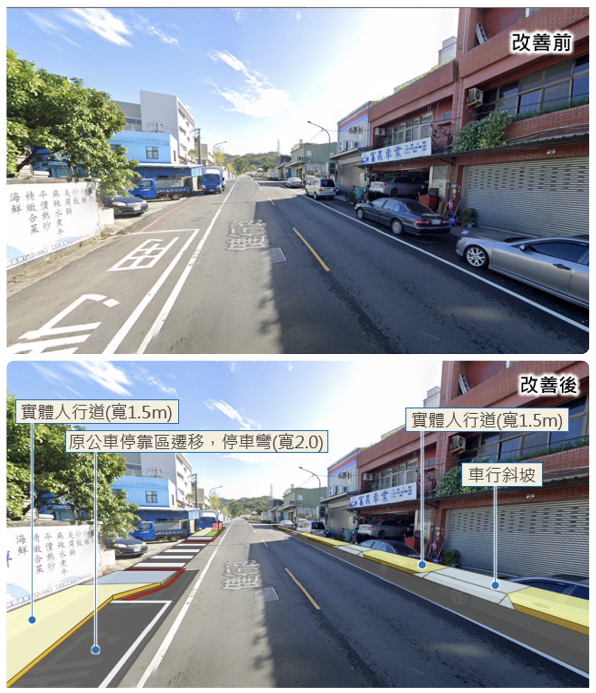 ↑大業路二段(健行路~會稽國小後門巷口)標線人行道改善示意圖