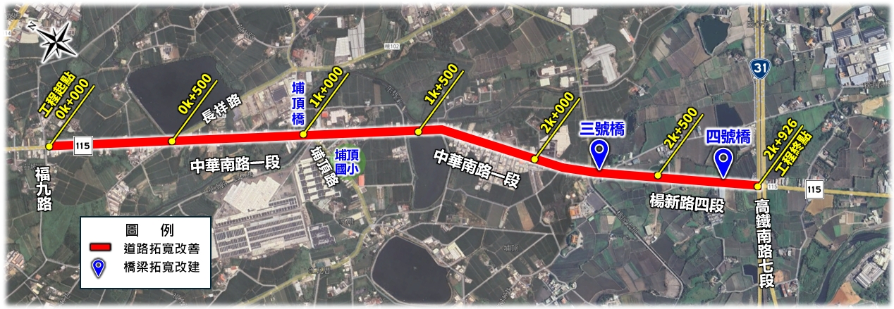↑「新屋區中華南路一段(福九路至高鐵南路七段)道路拓寬工程」範圍圖