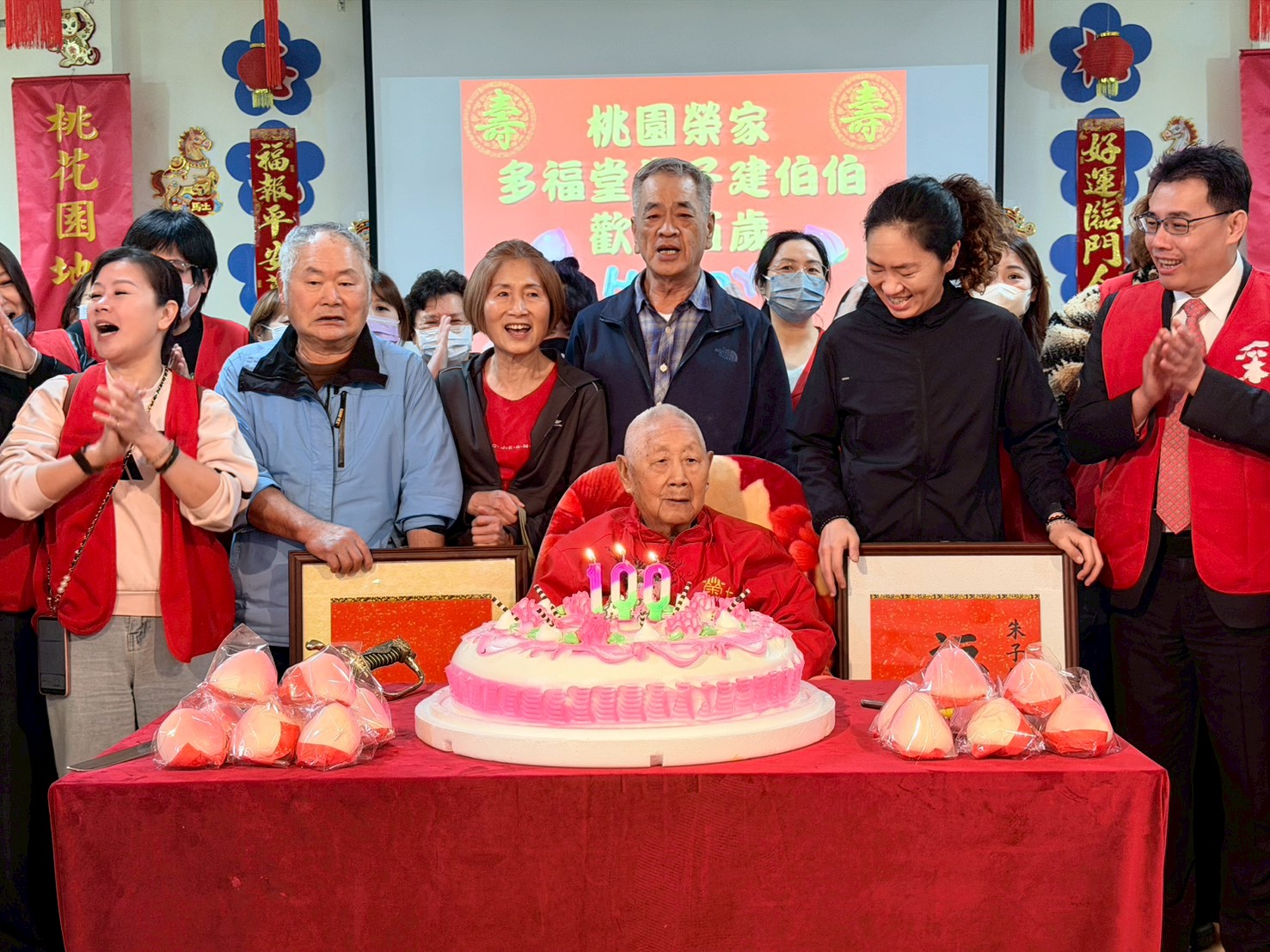 為讓長者感受新年美好氛圍,采盟免稅店於(5)日前來桃園榮家舉辦「馬到福來百歲春酒宴」,與住民長輩共度溫馨熱鬧的春酒時光。當日適逢多幸堂朱子健伯伯百歲壽誕,雙喜臨門。榮家主任陳平率一級主管及照護團隊為百歲人瑞賀壽,采盟免稅店代表邱博文副理亦親蒞現場獻上誠摯祝福,朱伯伯兒子也溫馨陪伴在側,共享天倫之樂。眾人齊聚忘我園區活動中心,場面隆重溫馨,喜氣洋洋。