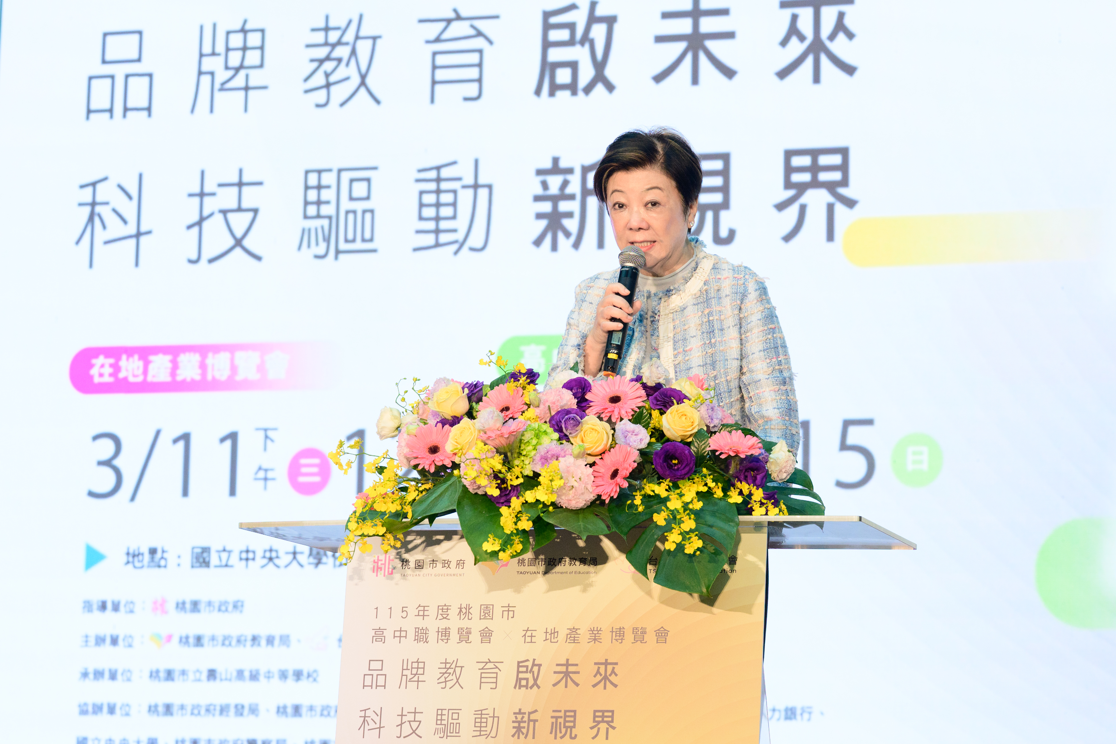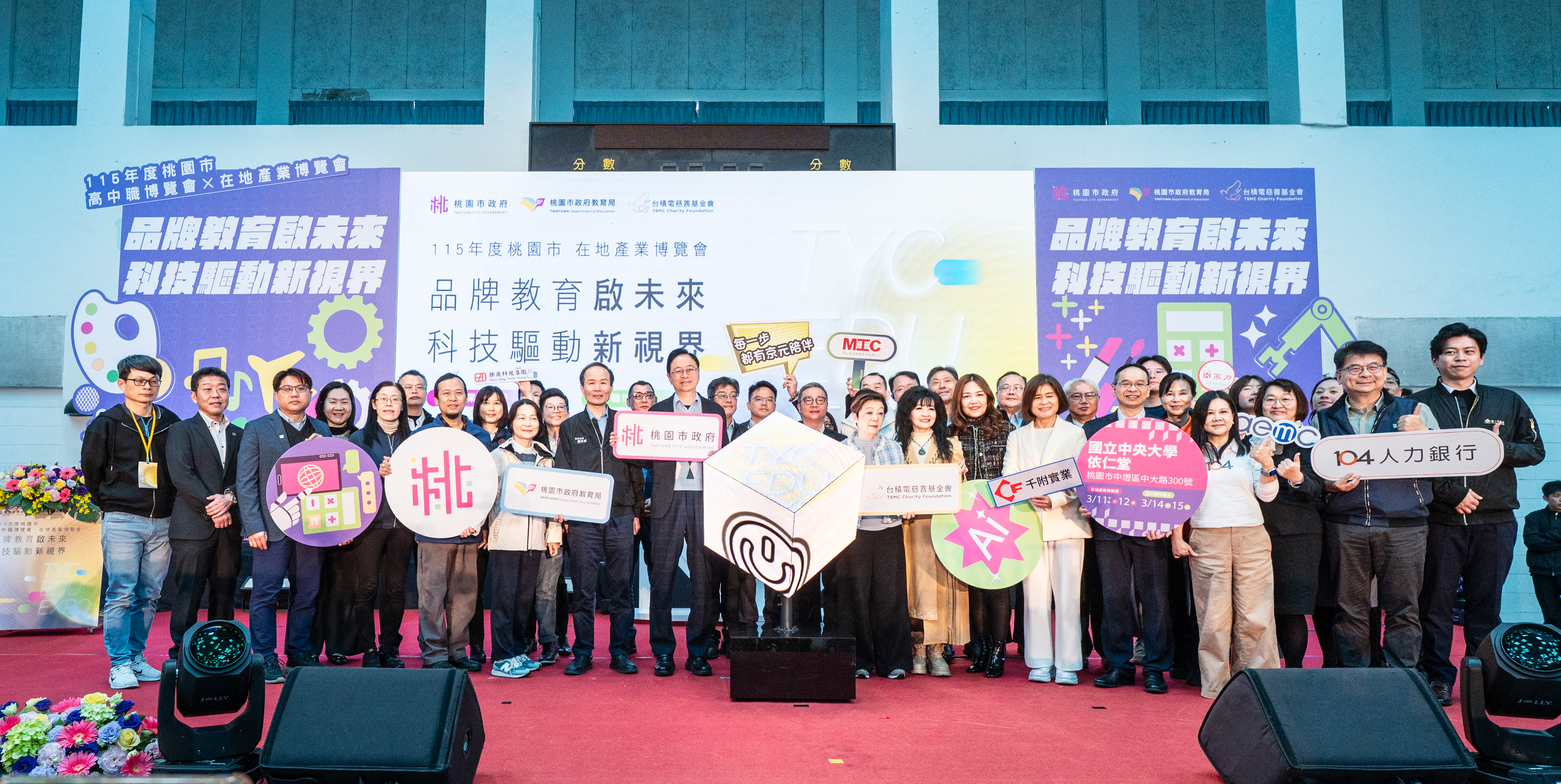今日包括市府教育局長劉仲成、青年局副局長涂淳惠、經發局主任秘書簡偉崙、就業職訓服務處處長陳秋媚、台積電慈善基金會董事長張淑芬、桃園市家長會長協會理事長温碧雲等均一同出席。