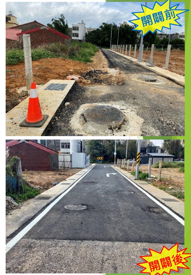 草漯第六區毗鄰道路學文一街施工前與完工後對照圖↑