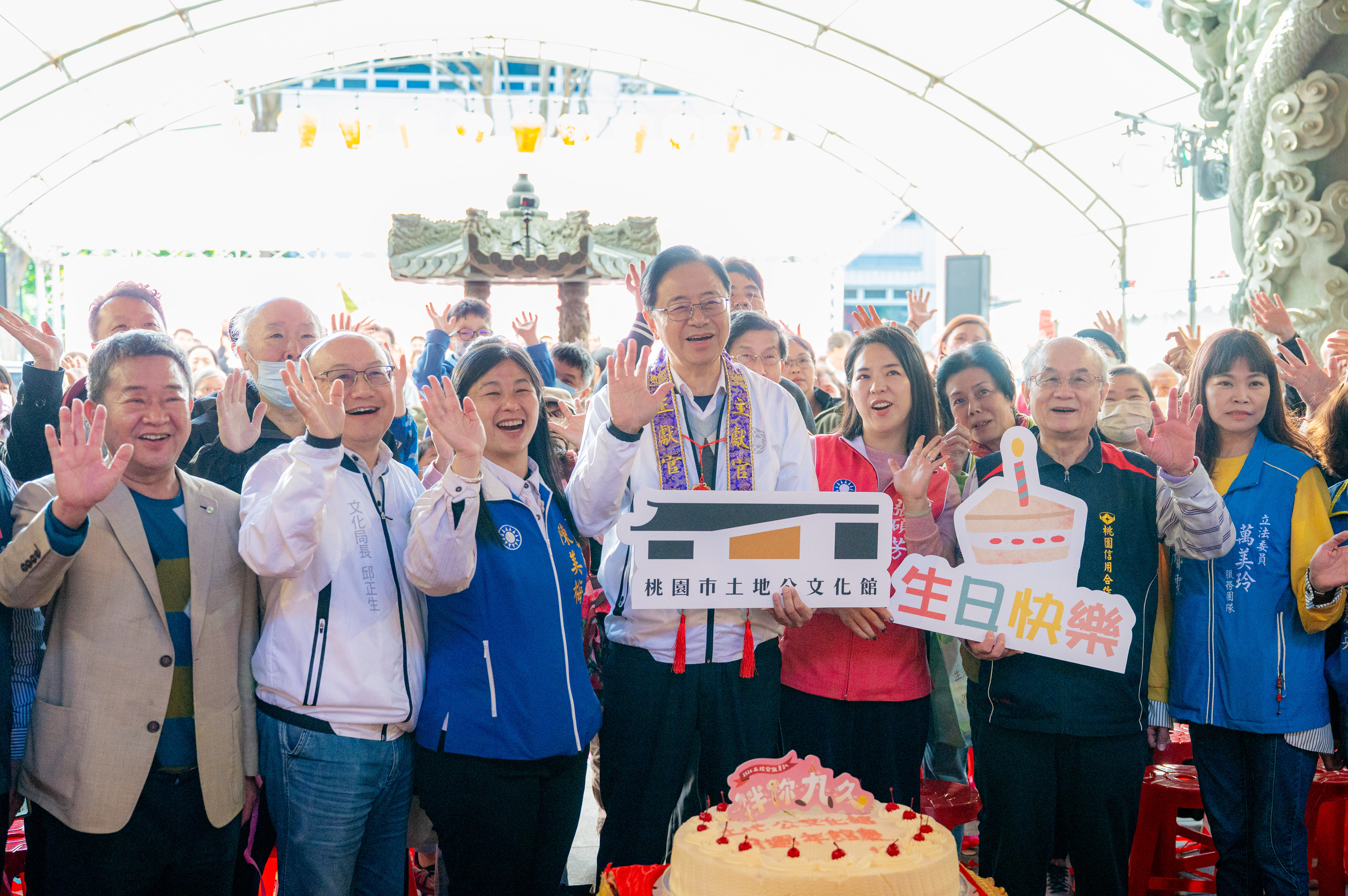 桃園市長張善政(14)日下午前往桃園區,出席「土地公做牙趴」土地公文化館9周年館慶活動。張市長表示,活動選在農曆二月初二「土地公生」前一個週末舉行,同時慶祝土地公文化館成立9週年。