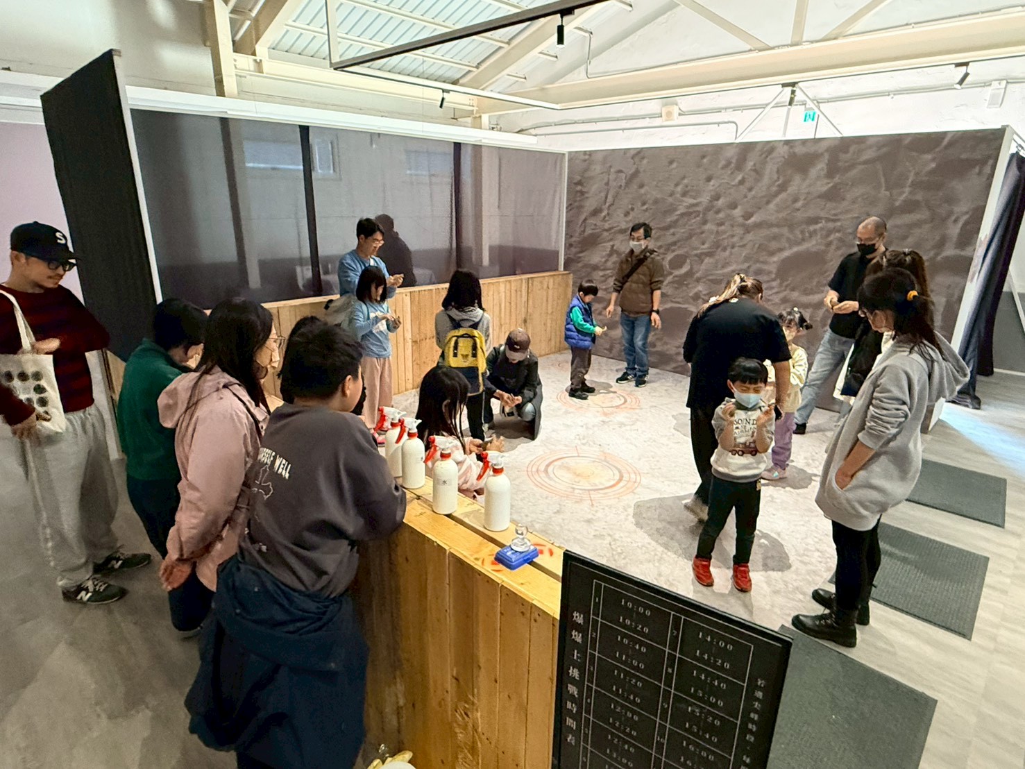 展覽規劃以「沉浸—包覆—靜謐」為敘事節奏,串聯三大倉庫空間,規劃「聽廳」、「賞廳」與「動廳」三大主題展區,透過不同感官體驗,引導觀眾從「聽見陶瓷」、到「細看陶瓷」、再到「參與陶瓷」,打開欣賞陶瓷的全新方式。「聽廳」聚焦揉土、拉坯、修坯、燒窯等過程的真實聲響,帶領觀眾走入陶藝家的創作現場,其中包含ASMR(自發性知覺經絡反應)沉浸體驗區,讓觀眾放大感官置身在原始的製陶聲音,感受陶瓷創作的時間與手做時的聲音交錯變化。「賞廳」則以視覺與聽覺交織的跨感官體驗為核心,透過展場氛圍與聲音設計,讓觀眾在觀看作品的同時,也能「聽見」陶藝的質地與情緒,引導觀者放慢腳步,細看作品的樣貌、作品的聲音訴說,在靜謐的觀展過程中感受陶藝的另一種魅力。「動廳」結合AI科技與互動裝置,讓觀眾在陶瓷上彩繪心聲,轉換後看見自己的聲音。透過互動體驗,不僅觀展,也成為創作的一部分,體驗聲音、身體與藝術之間的連結。此外,展覽也設計「爆爆土」體驗活動,邀請民眾親手觸碰陶土,在捏、摔、回彈與擠壓的過程中製造各種聲響,感受陶土最純粹的樂趣。
