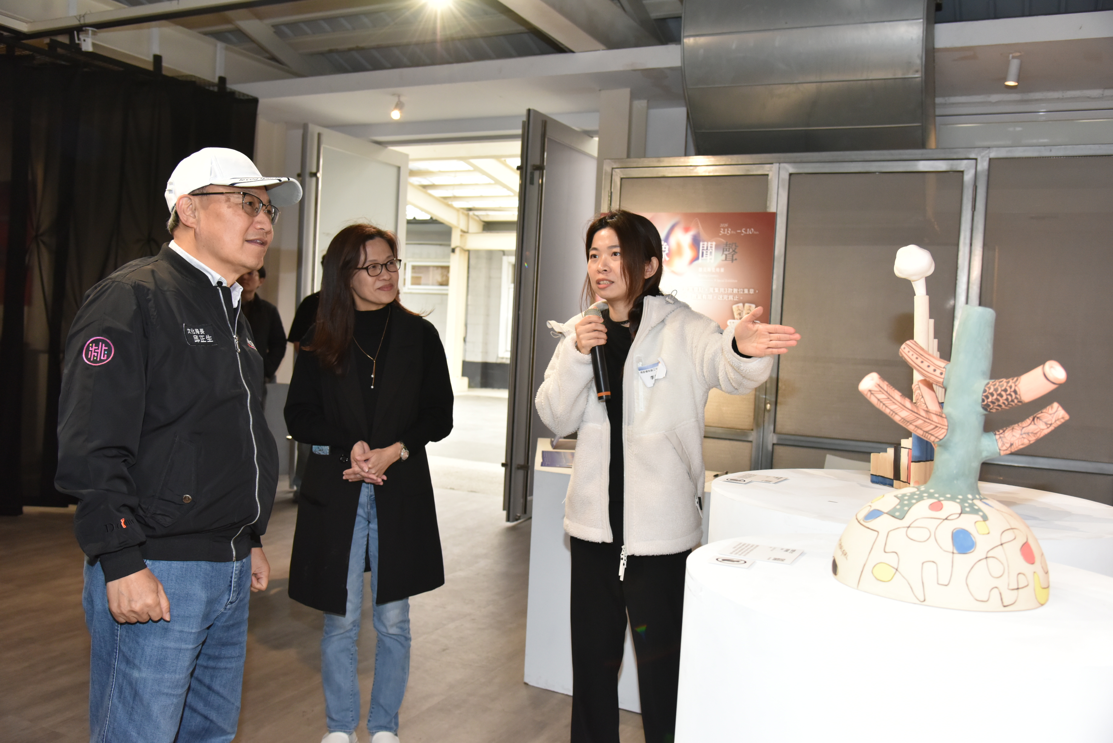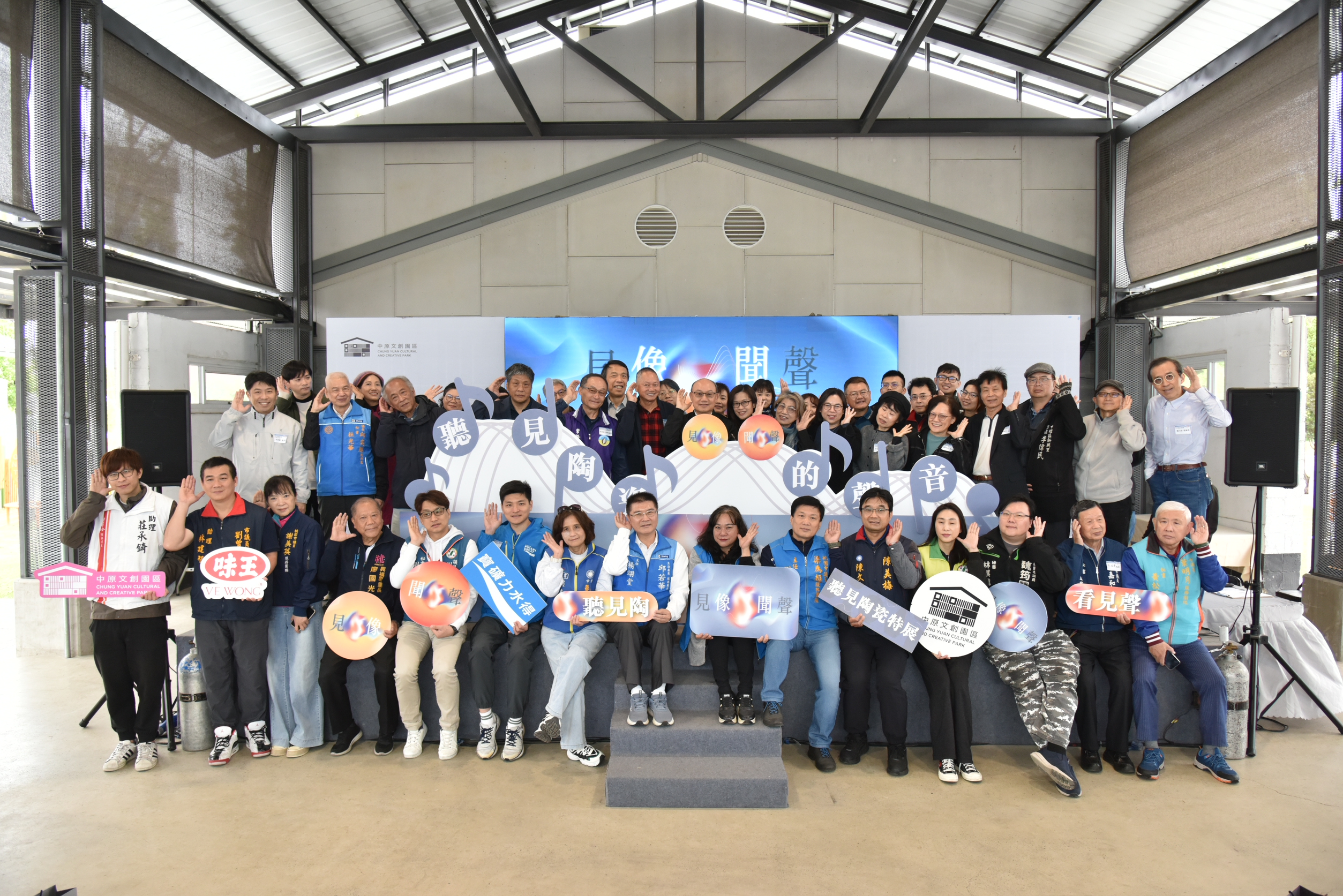 中原文創園區年度特展「見像・聞聲」聽見陶瓷特展,跨界整合陶瓷藝術、聲音設計、數位科技與沉浸式體驗的感官之旅,以「聲音」作為觀展路徑,鬆動民眾觀看陶藝的既定框架,建構一場介於「實際勞動」與「數位虛擬」之間的感官體驗,引導觀者重新感知陶藝所蘊含聲音的力量。開幕活動由桃園市政府文化局長邱正生、中原文創園區總監游冉琪、國立臺北科技大學人文與社會科學學院院長王怡惠、台灣陶瓷雕塑學會創會理事長游忠平、理事長許明香、桃園市陶藝協會理事長陳敬輝、桃園市陶藝藝術發展協會、策展顧問莊秀玲、資深陶藝家伍坤山、張美雲、詹國祥、許旭倫及國立臺灣藝術大學工藝設計學系系主任梁家豪等貴賓出席,一同揭開序幕。展期自3月13日至5月10日止,於中原文創園區1至3倉盛大展出。