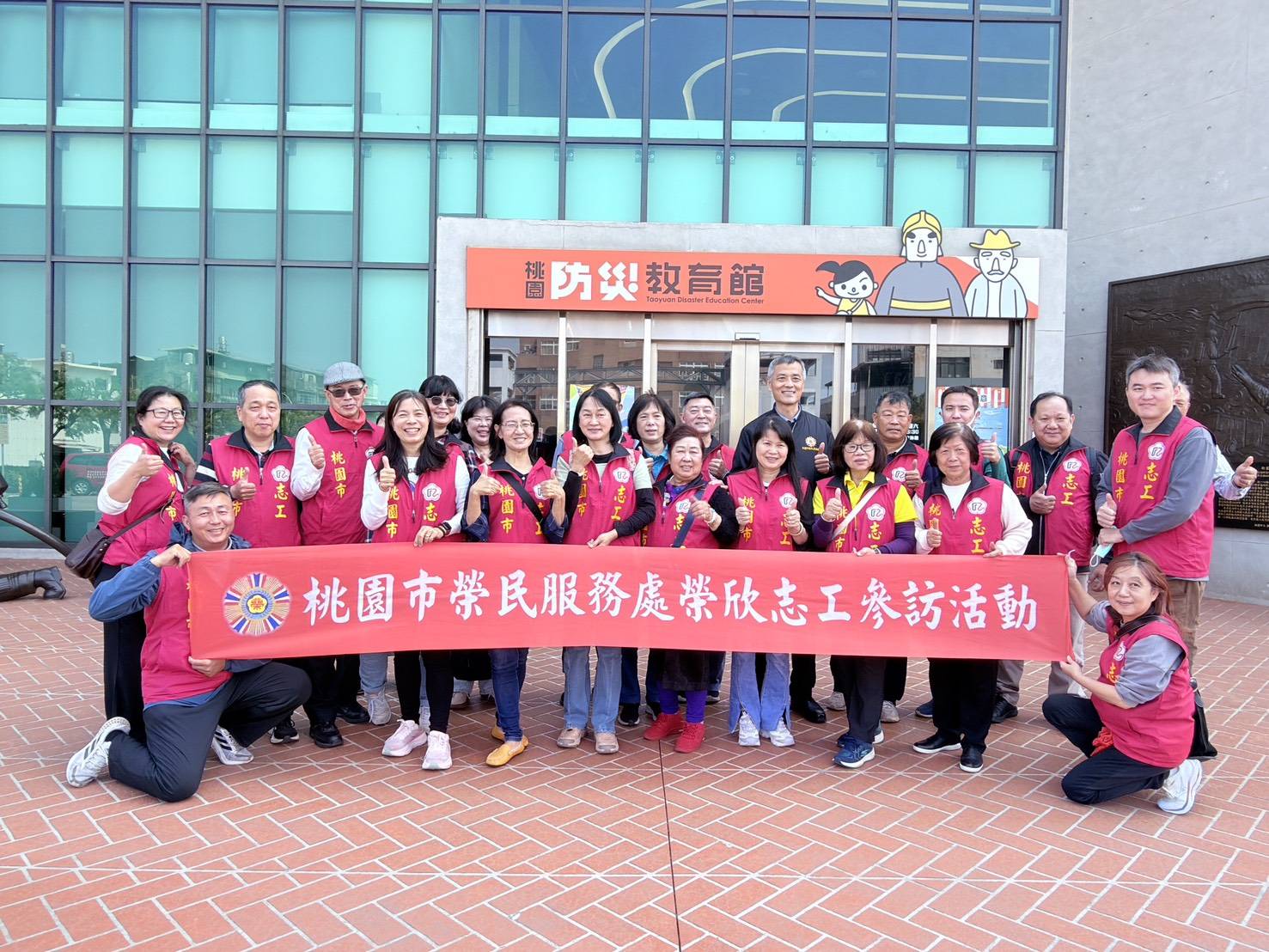 為強化榮服處與榮欣志工大隊之交流與聯繫,以及增進志工災防專業之能,桃園市榮民服務處20日辦理「115年度榮欣志工第一季聯繫會議暨防災教育參訪活動」,由吳文智總幹事率隊,近40位志工成員參加,前進至桃園市防災教育館參訪,增進志工專業知能及拓展知識學習。