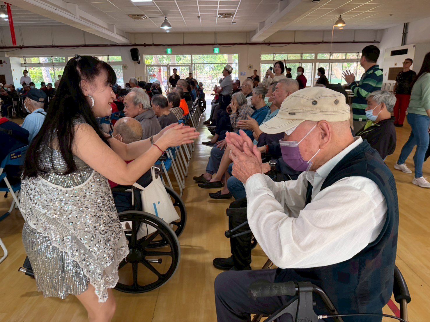 本次活動由秘書長錢憶華親自邀集多位實力派唱將,演唱多首經典金曲,熟悉旋律引發長輩們滿滿共鳴;現場亦安排樂音低迴、情感細膩的薩克斯風演奏,以及氣勢磅礡、節奏震撼的响太鼓團演出,精彩節目輪番登場,掌聲此起彼落,氣氛熱烈。在音樂與節奏的感染下,不少長輩也忍不住上台共舞,隨著旋律輕輕擺動,臉上洋溢著燦爛笑容,現場充滿溫馨與活力。參與活動的伯伯開心表示:「這些歌都很熟悉,聽了心情特別好,好像回到年輕的時候!」也有阿姨笑著說:「可以一起唱歌、跳舞,還有表演可以看,真的很開心,希望常常有這樣的活動。」
