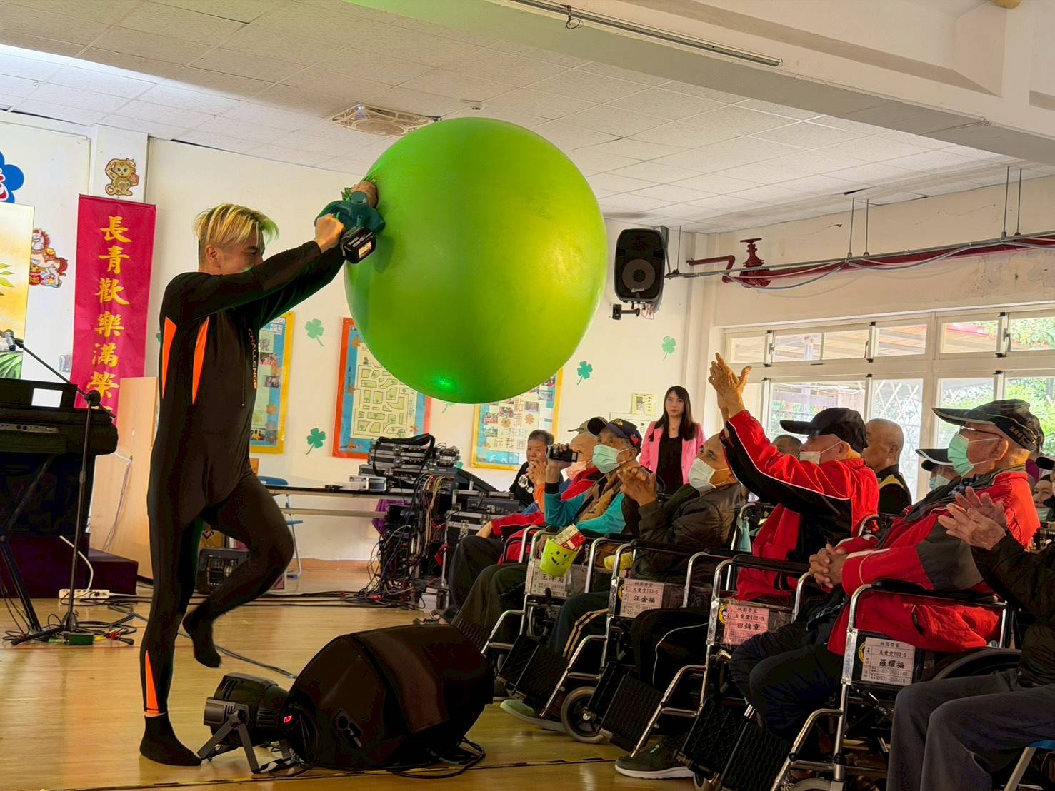 春暖花開、萬物復甦的時節,溫暖的氣息也悄然流入桃園榮家。何歡劇團於(24)日前來舉辦「翻轉生命力」第882場公益演出,為長輩帶來一場充滿感動與活力的精彩表演。活動內容豐富多元,包含雋永金曲演唱、精湛雜耍特技及令人驚艷的變臉秀、魔術,現場氣氛熱絡,長輩們陶醉其中、驚呼連連,並以熱烈掌聲回應演出團隊,度過一段充滿歡笑與朝氣的美好早晨。