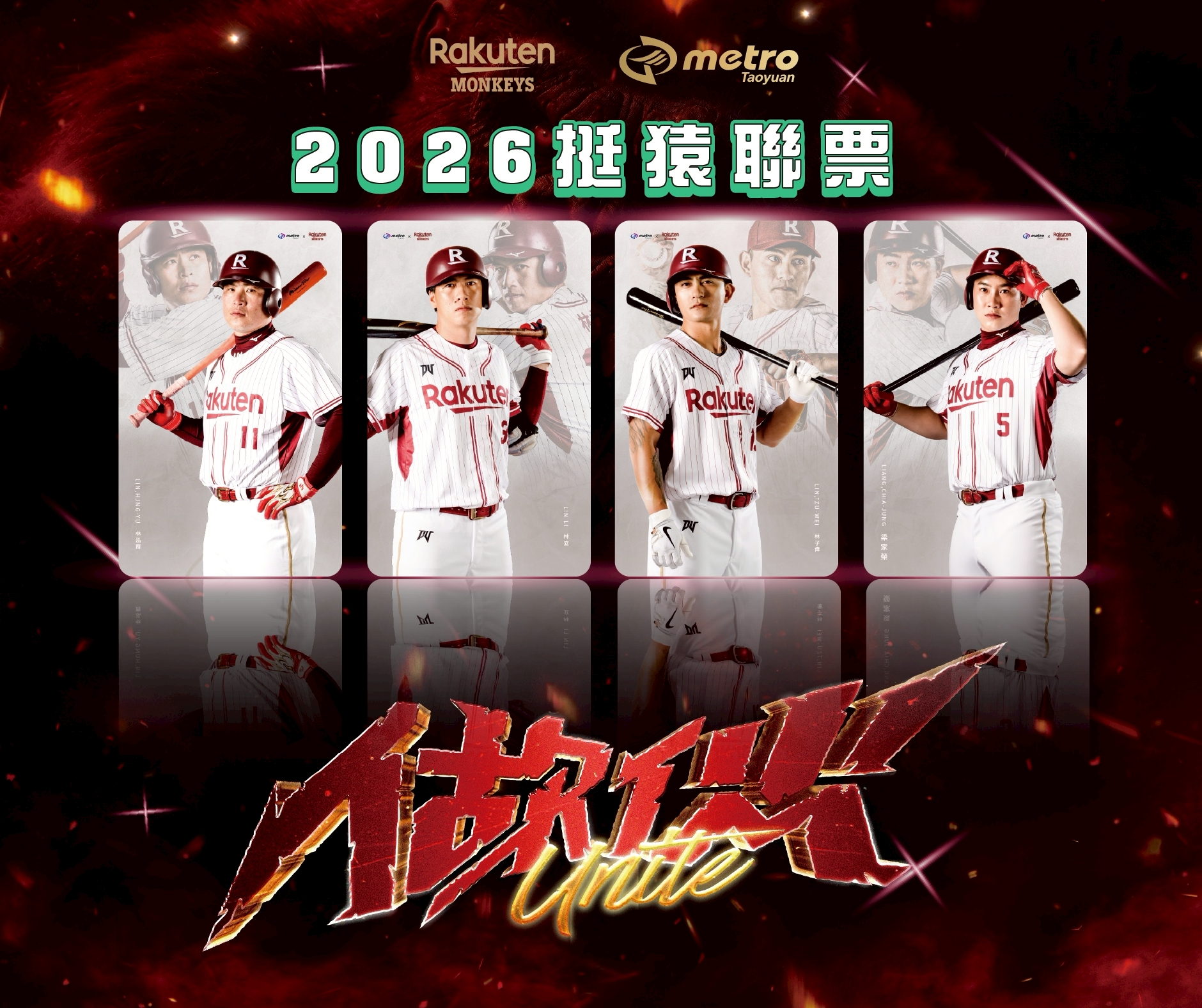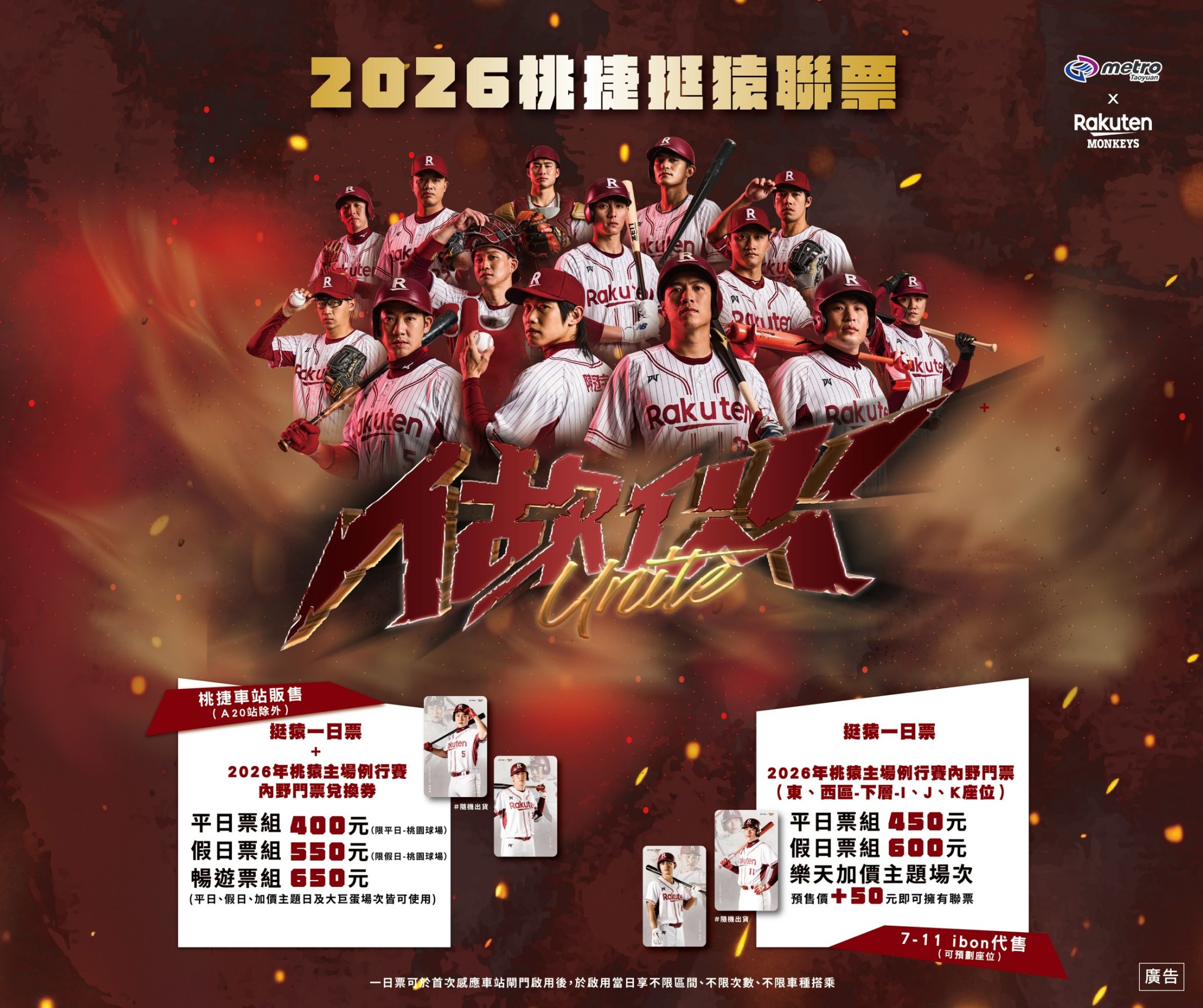 桃園大眾捷運公司表示,本次「挺猿彩繪列車」以樂天桃猿年度主題「做伙UNITE」設計,並自3月24日起推出「挺猿聯票」,於機捷各站(A20站除外)或透過7-11 ibon購票劃位。套票結合「挺猿一日票」與樂天桃猿主場內野門票,並推出多款球星專屬卡面,兼具交通與收藏價值,全力與球迷們為樂天桃猿加油打氣。