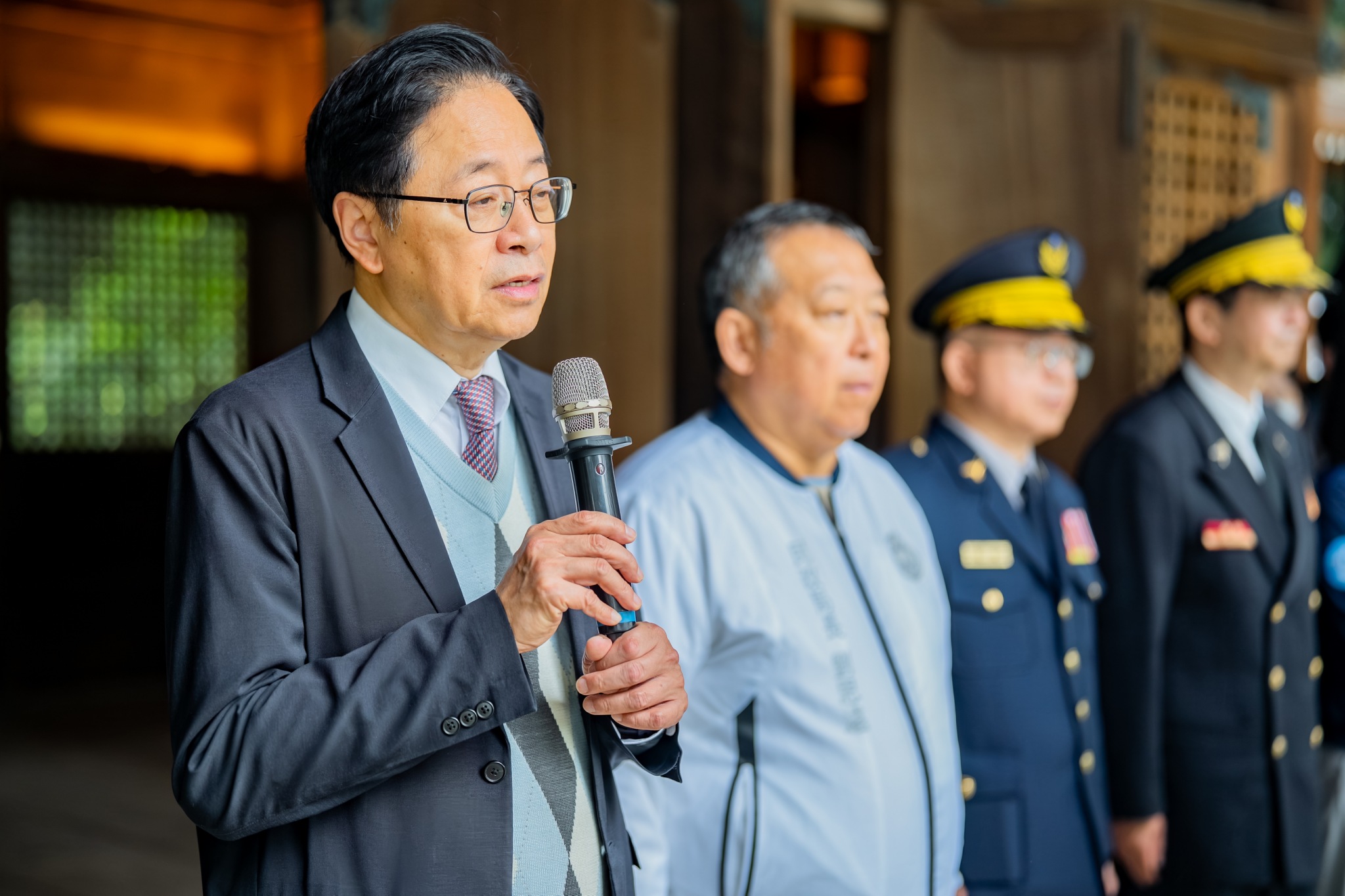 桃園市長張善政今(27)日上午前往桃園忠烈祠暨神社文化園區,出席「桃園市115年春祭致祭革命先烈暨林鴻森、余家昶烈士入祀典禮」。張市長表示,清明時節將至,市府除循例舉行春祭典禮緬懷英烈,今日更特別辦理林鴻森、余家昶兩位烈士入祀典禮,表彰其在去(114)年重大災難與突發事件中,為守護他人不惜犧牲生命的英勇事蹟,並向全體英靈致上最深敬意。