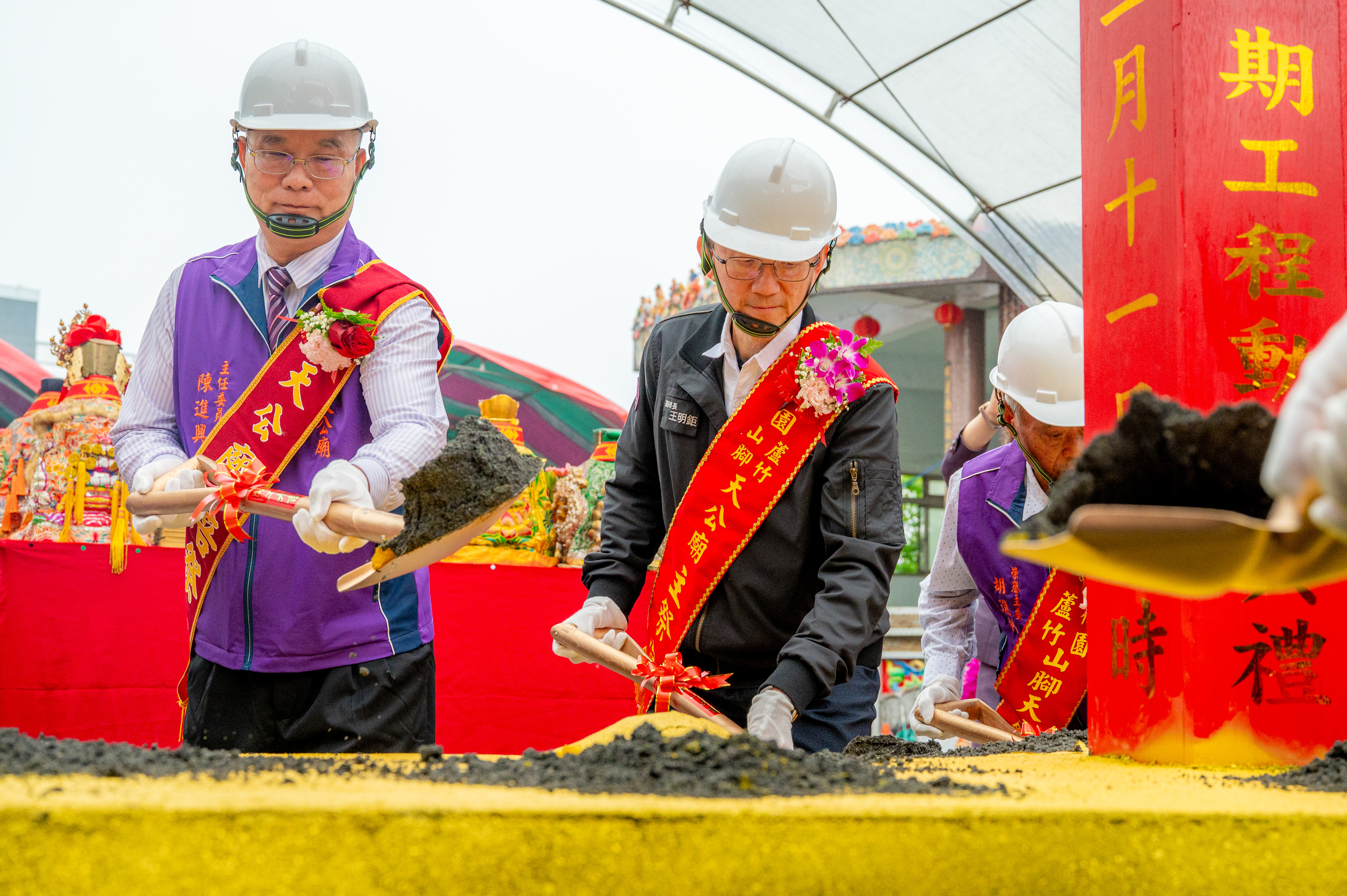 桃園市副市長王明鉅今(29)日上午前往蘆竹區,出席「蘆竹山腳天公廟重建第1期工程開工動土典禮」。王副市長表示,山腳天公廟為地方重要的信仰中心,過去因土地法規及寺廟登記等問題,重建進度一度停滯;在市府與民間齊心合作下,終於突破瓶頸,順利啟動第一期工程,為廟宇合法化與永續發展奠定穩固基礎。