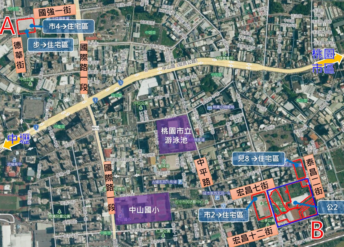 桃園區中平市地重劃區範圍(A、B區)示意圖