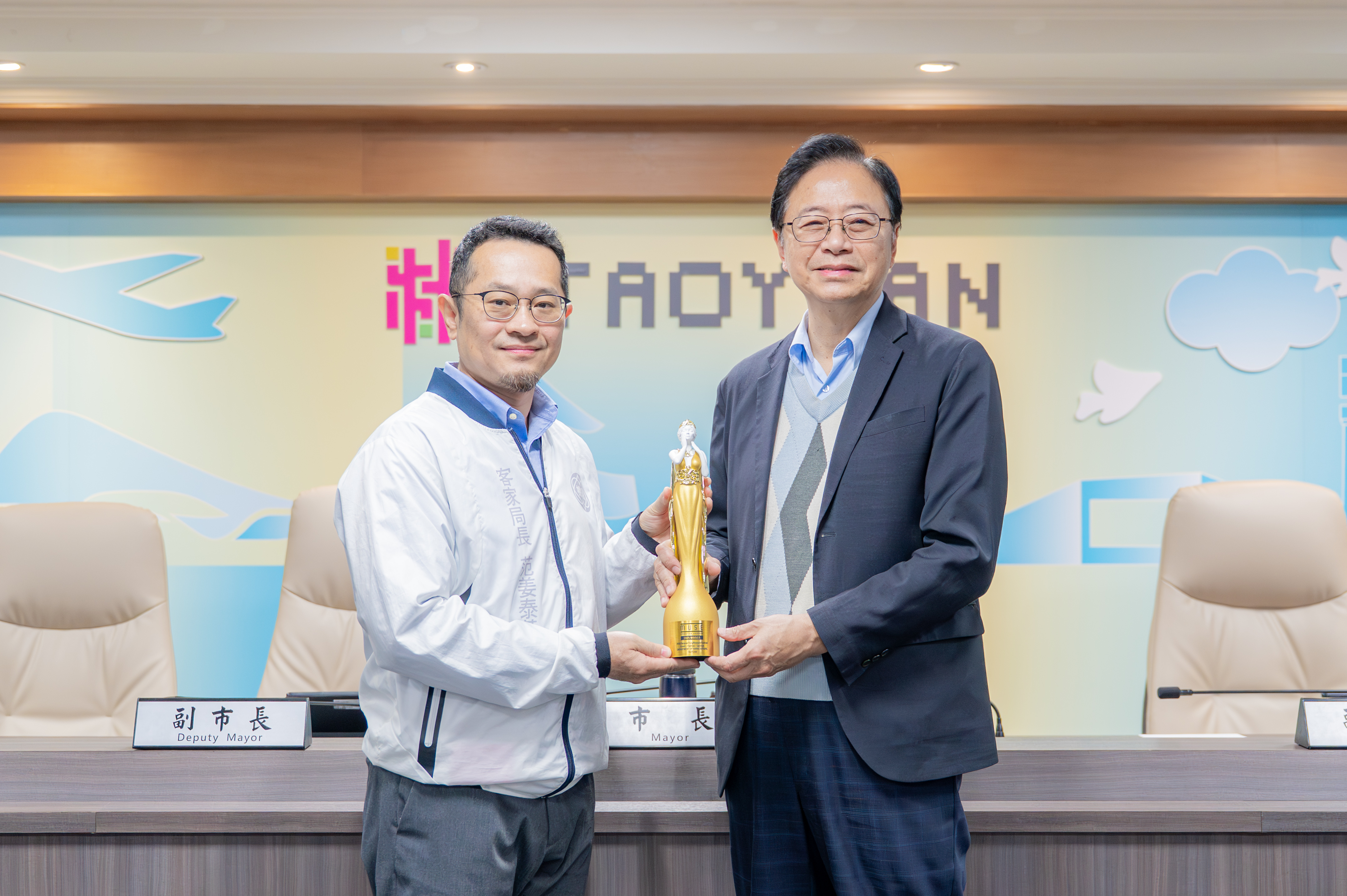桃園市長張善政今(1)日上午主持市政會議,接受客家局呈獻「2025桃園桐花祭-桐花童話」榮獲美國繆思創意大獎嘉年華節慶活動類金獎。張市長表示,去(114)年桐花祭打造全台唯一兒童版桐花祭「桐花童話」,用童趣視角詮釋桐花與客庄文化,讓大小朋友在趣味氛圍中學習客家文化與共享親子時光,此創意規劃獲得國際獎項肯定,展現桃園在文化策展與活動創新的成果,感謝團隊投入與創意,市府將持續深耕客家文化,讓桃園文化品牌在國際舞台持續發光。