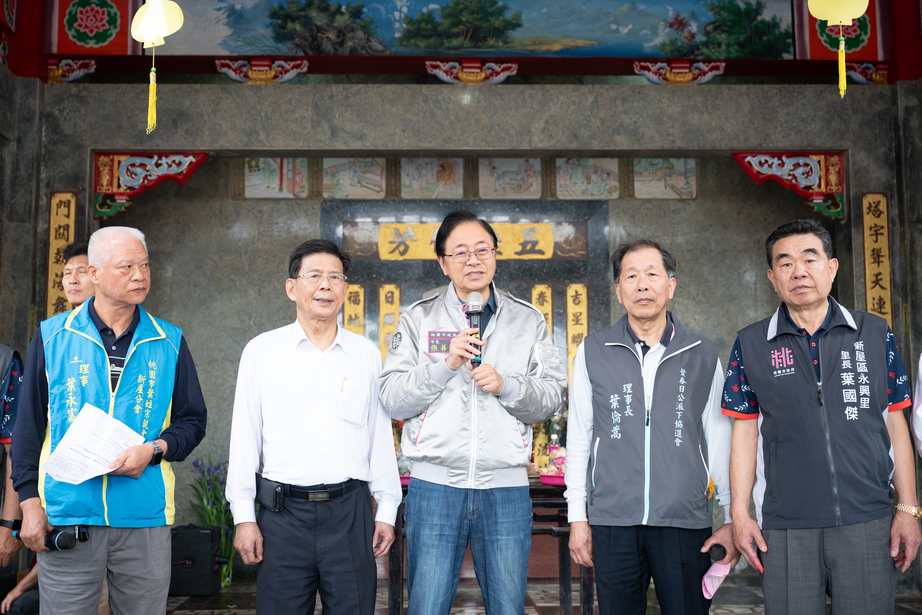 桃園市長張善政今(5)日上午前往新屋區,出席「葉五美宗族清明掃墓」活動,並頒授「市定民俗無形文化資產登錄證書」。張市長表示,今(115)年市府已公告登錄「葉五美宗族清明掃墓」為民俗類無形文化資產,每年清明時節,來自各地甚至海外的葉氏宗親齊聚桃園,參與人數高達數千人,為全臺灣規模最大單姓宗族祭祖活動,此次獲登錄為無形文化資產,實至名歸。