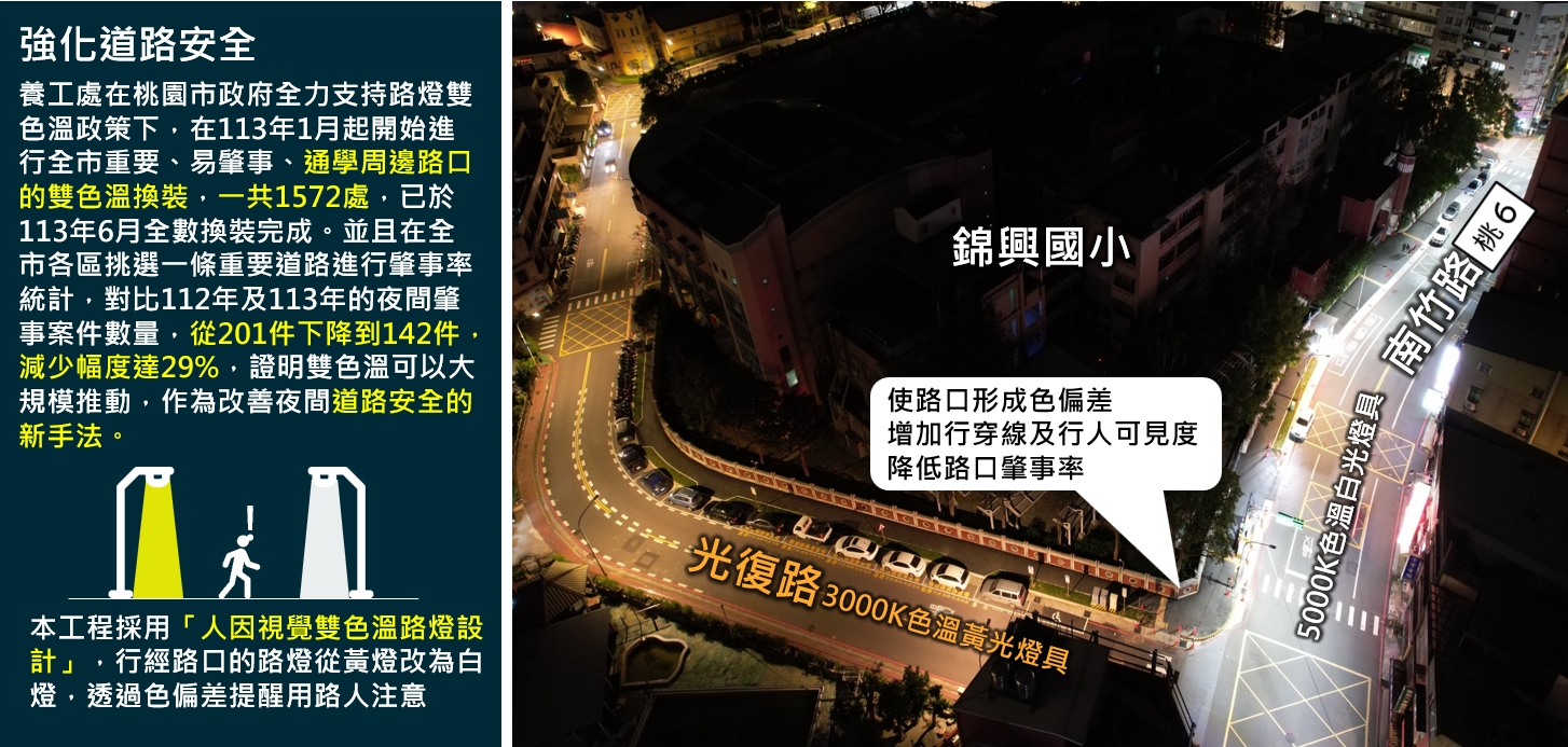 蘆竹區錦興國小周邊通學步道改善工程--路口設置雙色溫路燈提升夜間安全
