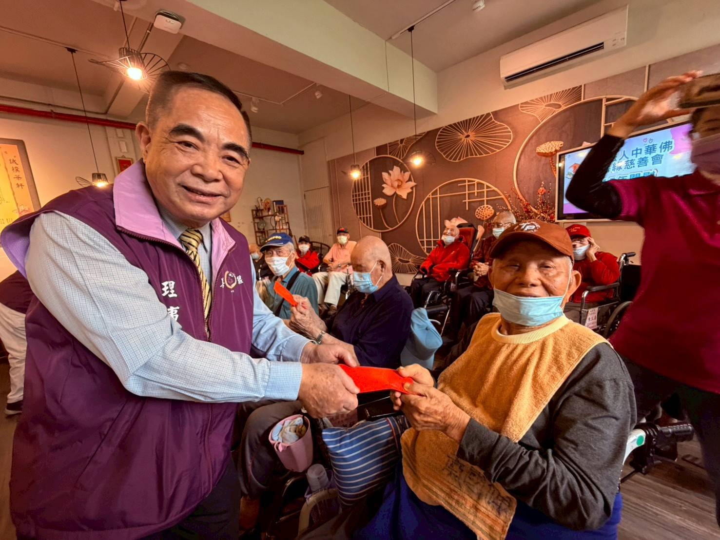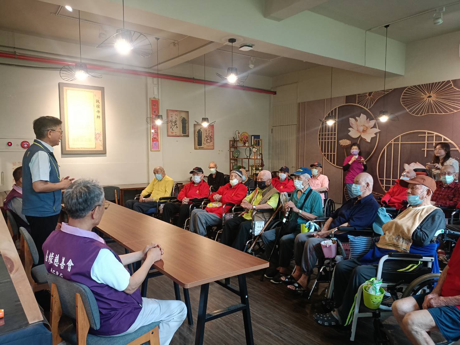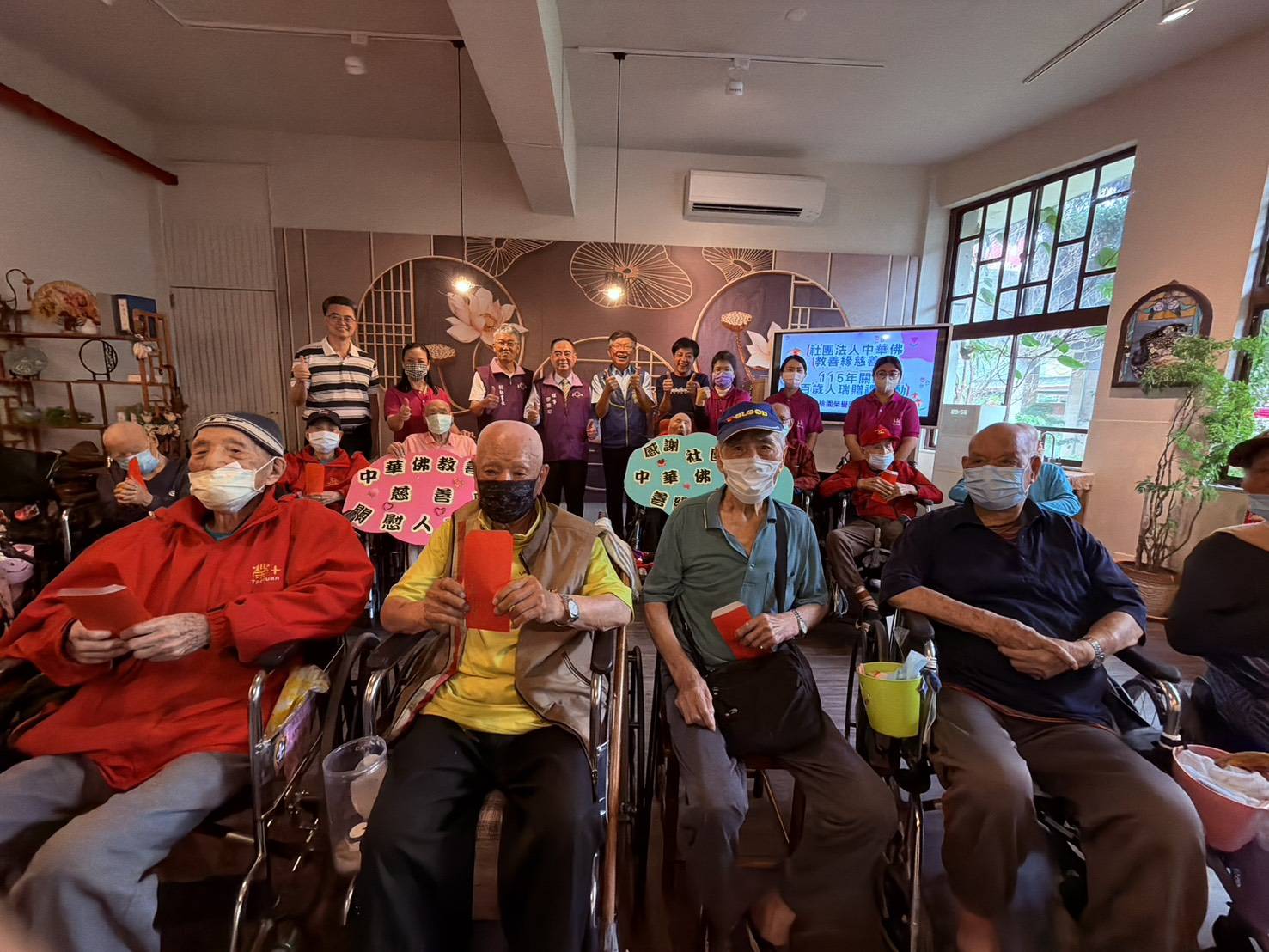 春暖善意滿人間,社團法人中華佛教善緣慈善會李德平理事偕楊雨榮副秘書長(17)日來到桃園榮家,為人瑞住民送上敬老金。榮家於家區茶軒舉辦茶會,現場齊聚17位嵩壽長者,慈善會祝福長輩健康平安呷百二,並和伯伯話家常,現場笑聲隆隆,溫馨滿溢。