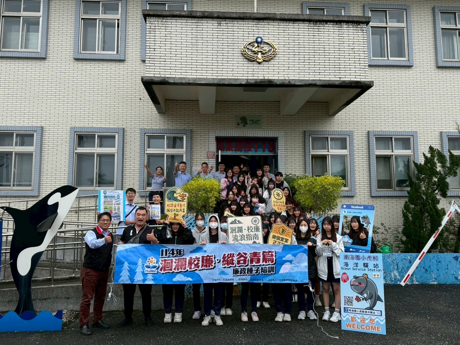 花蓮縣政府政風處於今(7)日假花蓮高商舉辦「高中職環境永續廉政工作坊」,首度將環境保育與誠信教育跨域結合,以實體課程搭配海巡署東部分署第一二岸巡隊「南海園小虎鯨海洋驛站」參訪活動,帶領學生走出課堂、走向大海,實地感受環境倫理與廉政議題的真實連結。