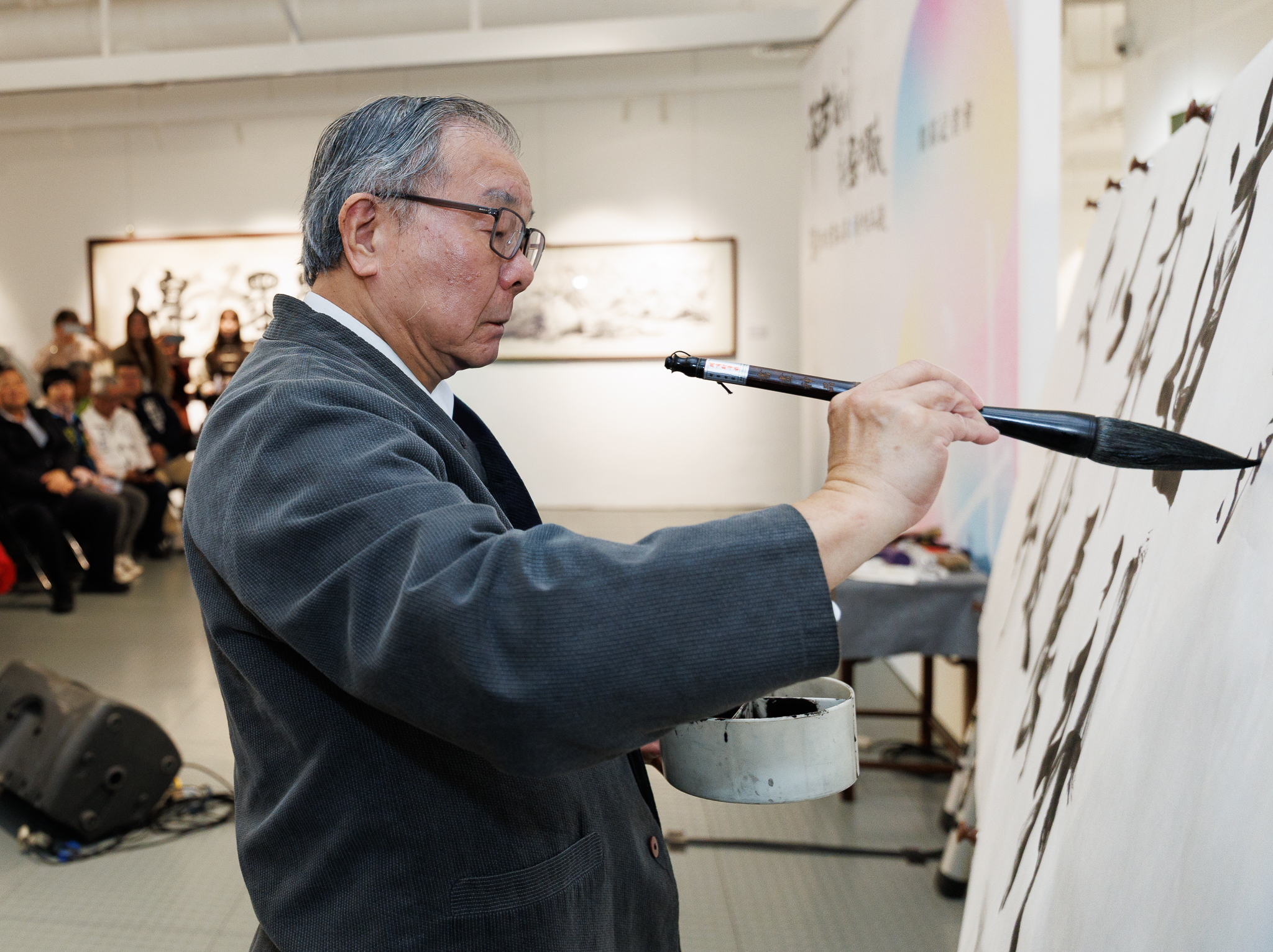 【記者陳駿彰/新竹報導】張炳煌教授是臺灣家喻戶曉的書法名家,今(27日)在新竹縣政府文化局美術館101展廳舉辦「承古開新、筆墨共融-書法暨e筆作品展」,開場由銅好樂團三重奏揭幕,而與張教授擁有多年深厚友誼的聲樂家簡文秀,特別專程趕赴新竹,高歌一曲〈又見炊煙〉結合張教授的書法揮毫,實為難得一見的跨域藝術聯動!