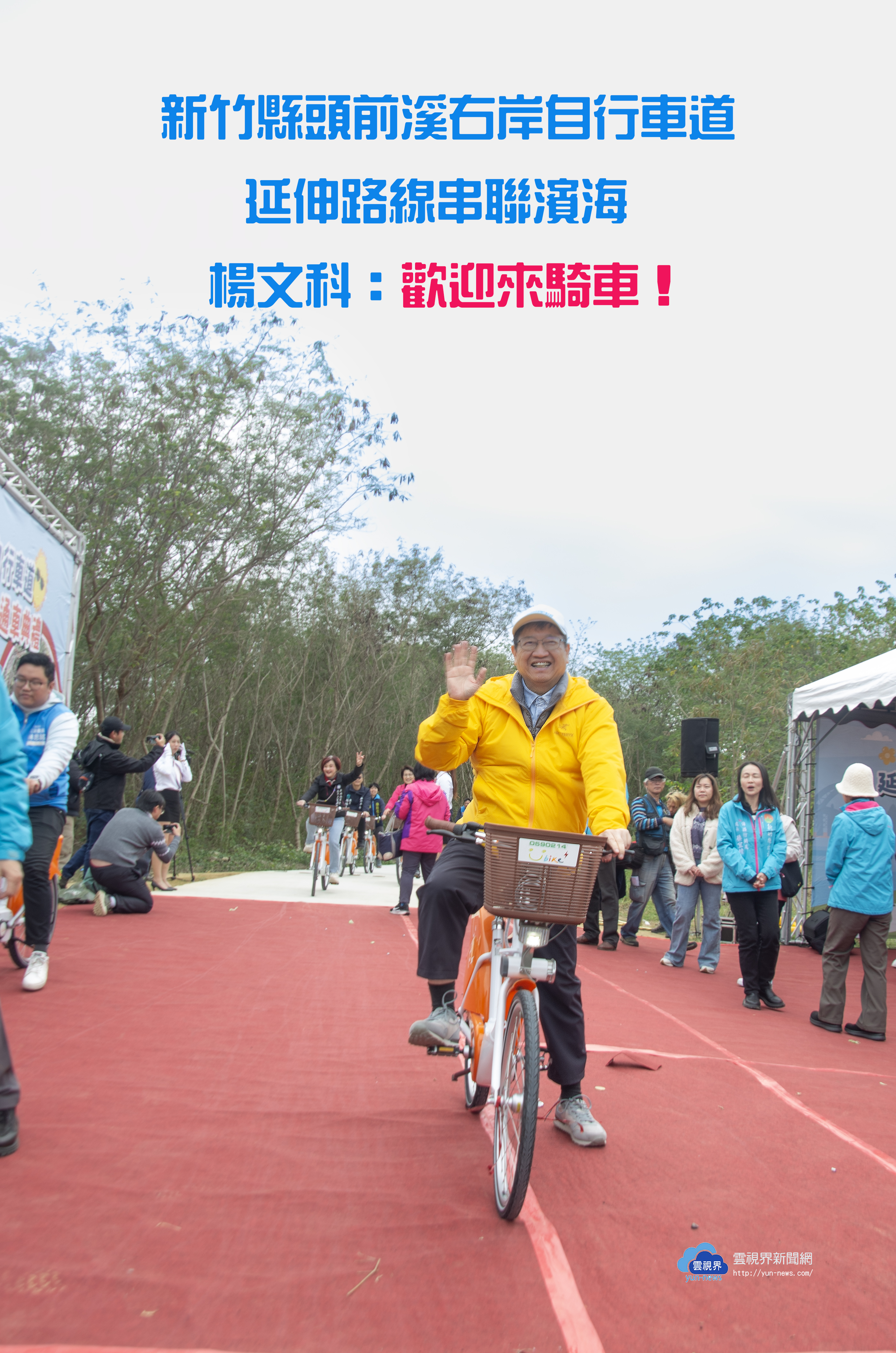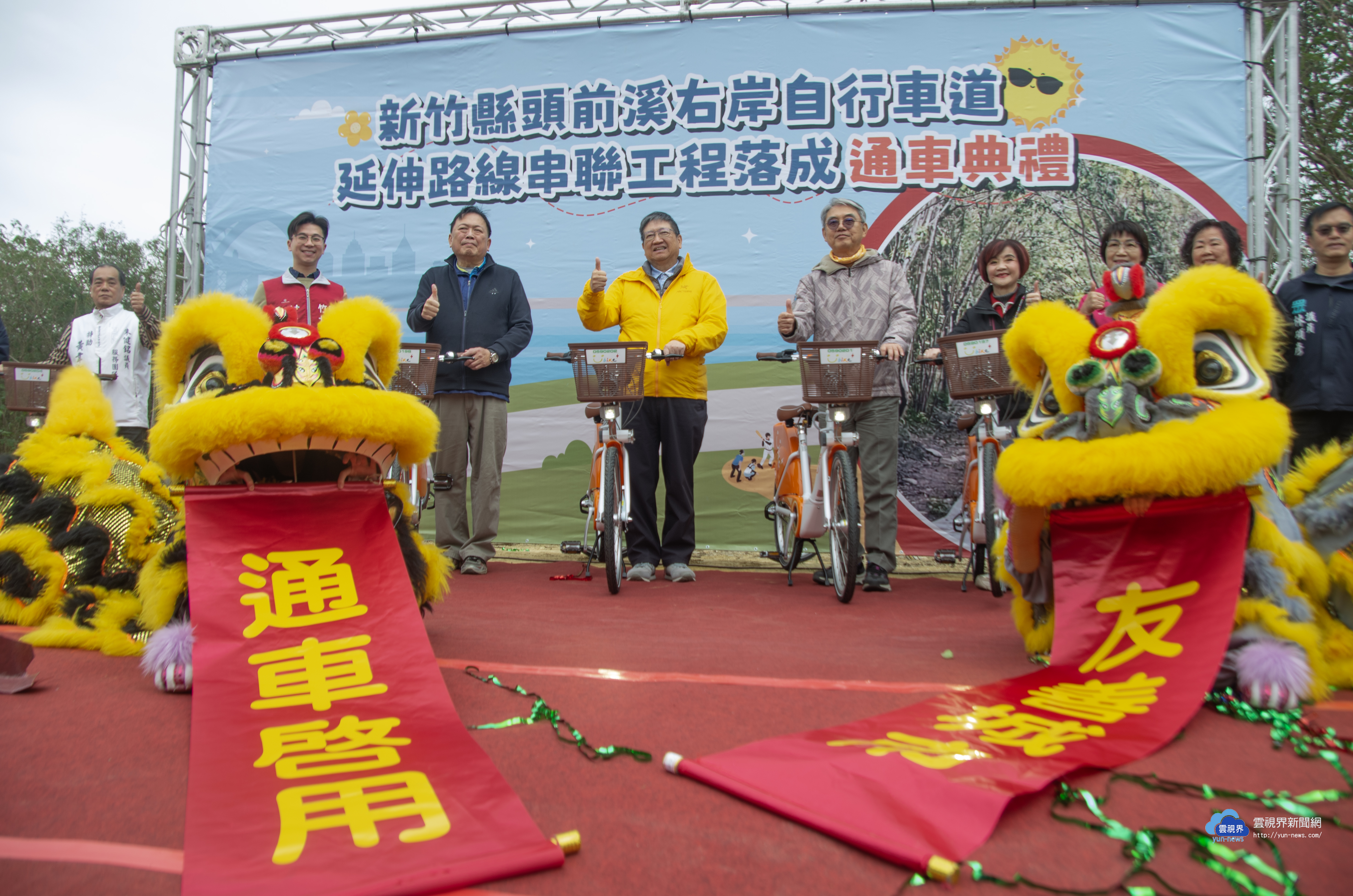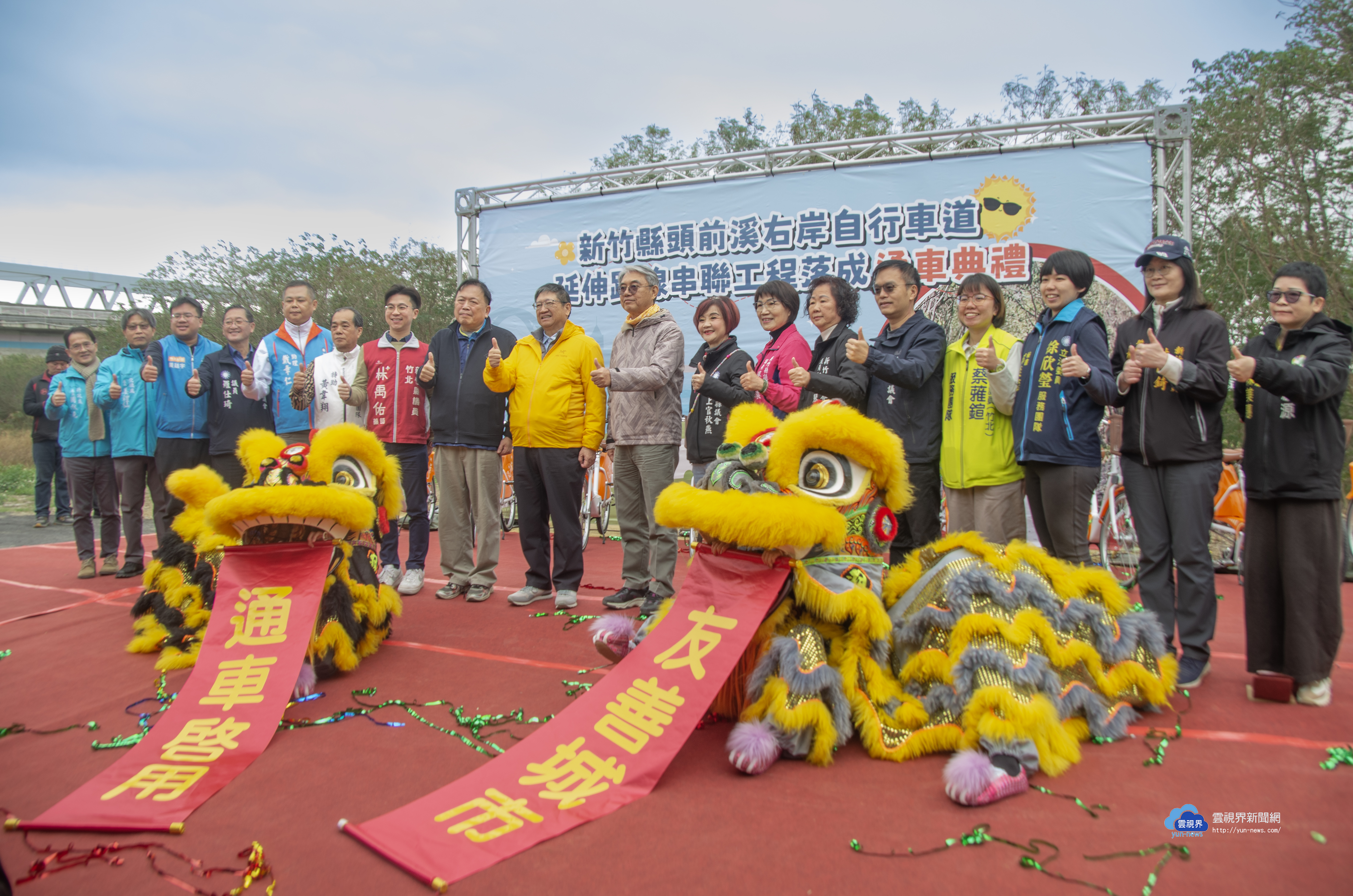 新竹縣頭前溪右岸自行車道於2月9日正式通車,新竹縣長楊文科邀交通部公路局北區養護工程分局長謝俊雄、經濟部水利署第二河川分署長楊人傑,及多名新竹縣議員,共同剪彩象徵啟用,並騎乘一小段,體驗合歡合抱的小徑「銀合隧道」、欣賞豆腐岩,感受頭前溪右岸自行車道的魅力。