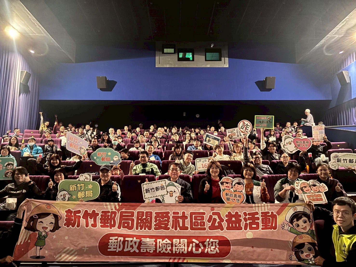 電影活動不忘關愛社區公益活動及防詐騙宣導。(新竹郵局提供)