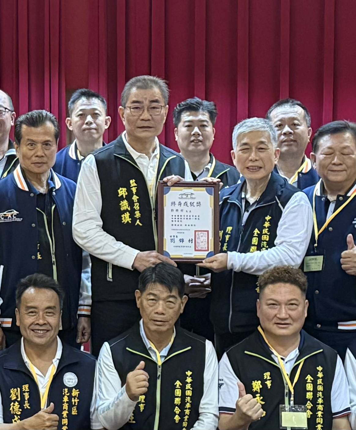 中華民國汽車商業同業公會21日、22日在南投縣舉辦「第八屆第3次會員大會暨2天一夜自強活動」,來自全台各縣市公會理事長、理監事與會員代表齊聚一堂。理事長劉錦村於會中細數兩屆任內成果,並獲大會通過取得「終身成就獎」最高榮譽,由監事會召集人邱識琪代表頒發。