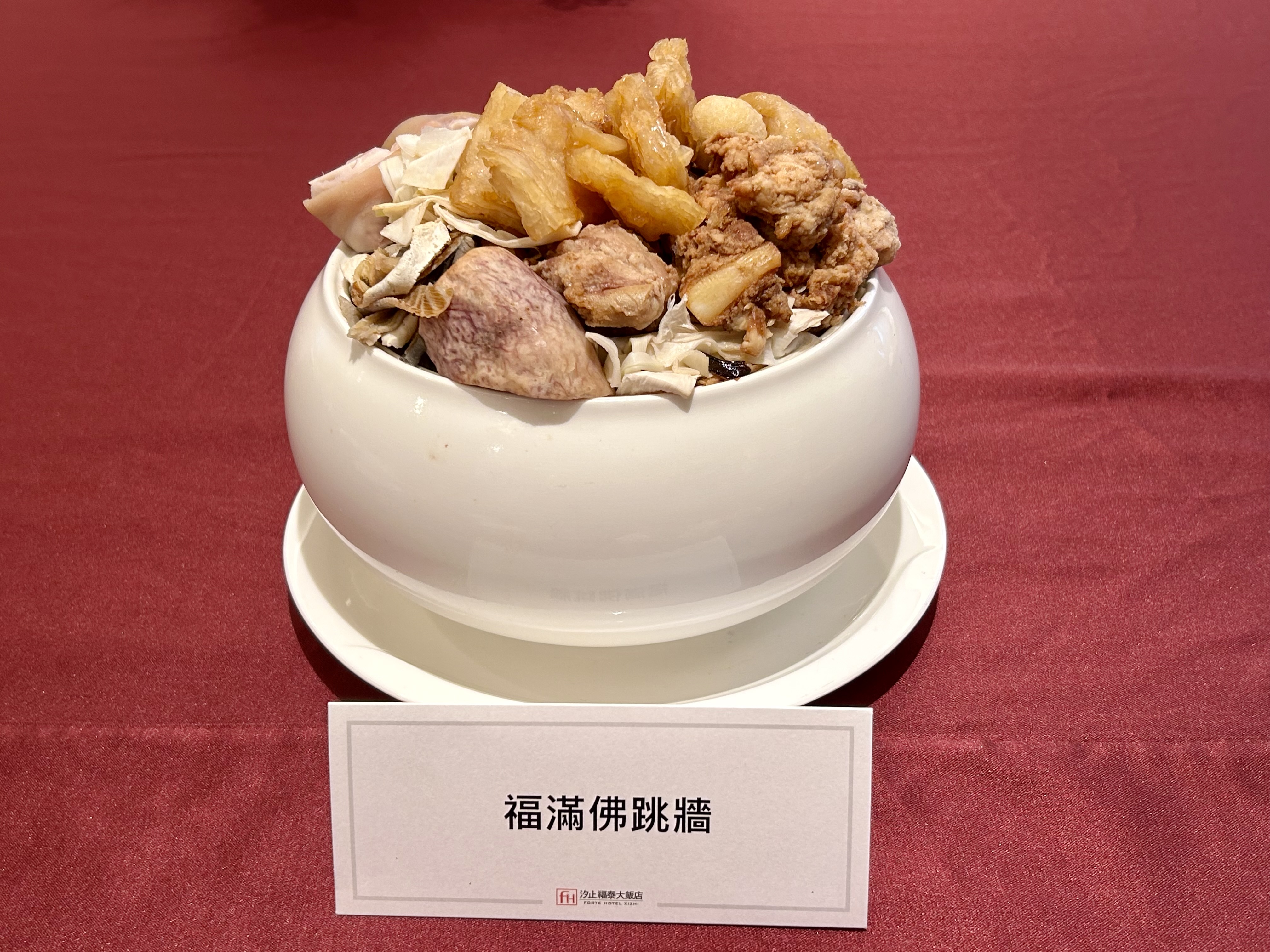 福滿樓招牌「佛跳牆」, 採老母雞慢火熬煮高湯為底 , 加入干貝 , 花菇等十餘味料 , 並融入台菜最核心的 [ 蔥燒 ] 使湯色澄亮 , 味厚不膩 ,更特別是加入主廚獨家秘方 , 讓湯頭回甘有層次,溫潤中帶著醇韻 . 這也就是台菜的靈魂 .