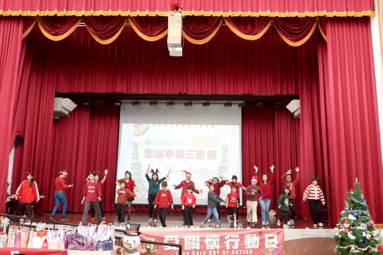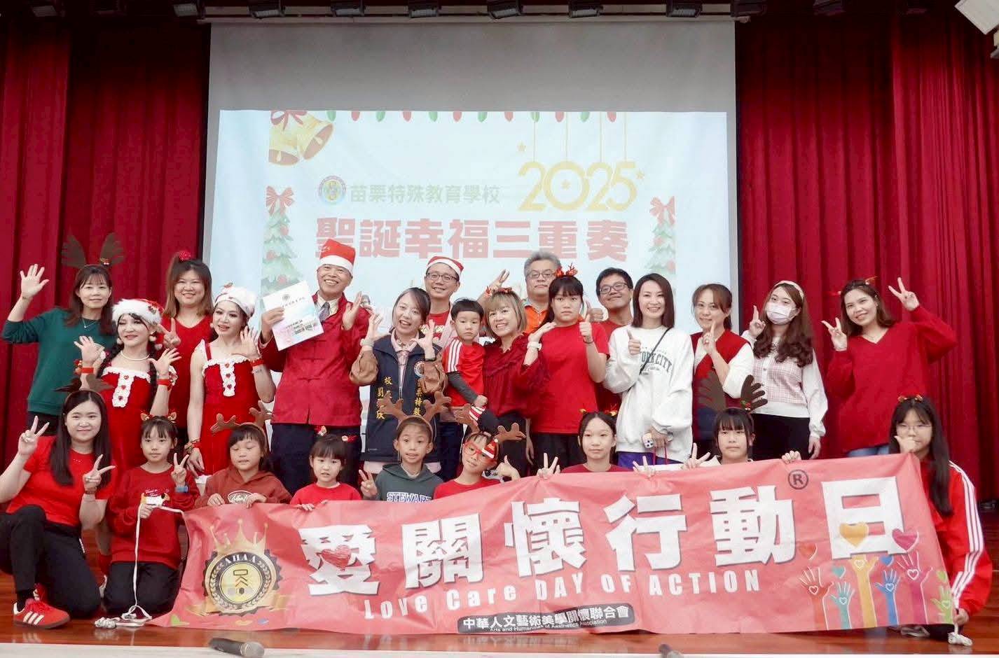 中華人文藝術美學關懷聯合會「愛關懷行動日」團隊走進國立苗栗特殊教育學校,舉辦一場充滿祝福與陪伴的公益演出,並結合善心人士的善款與物資捐贈,為孩子們送上最溫暖的節慶禮物。