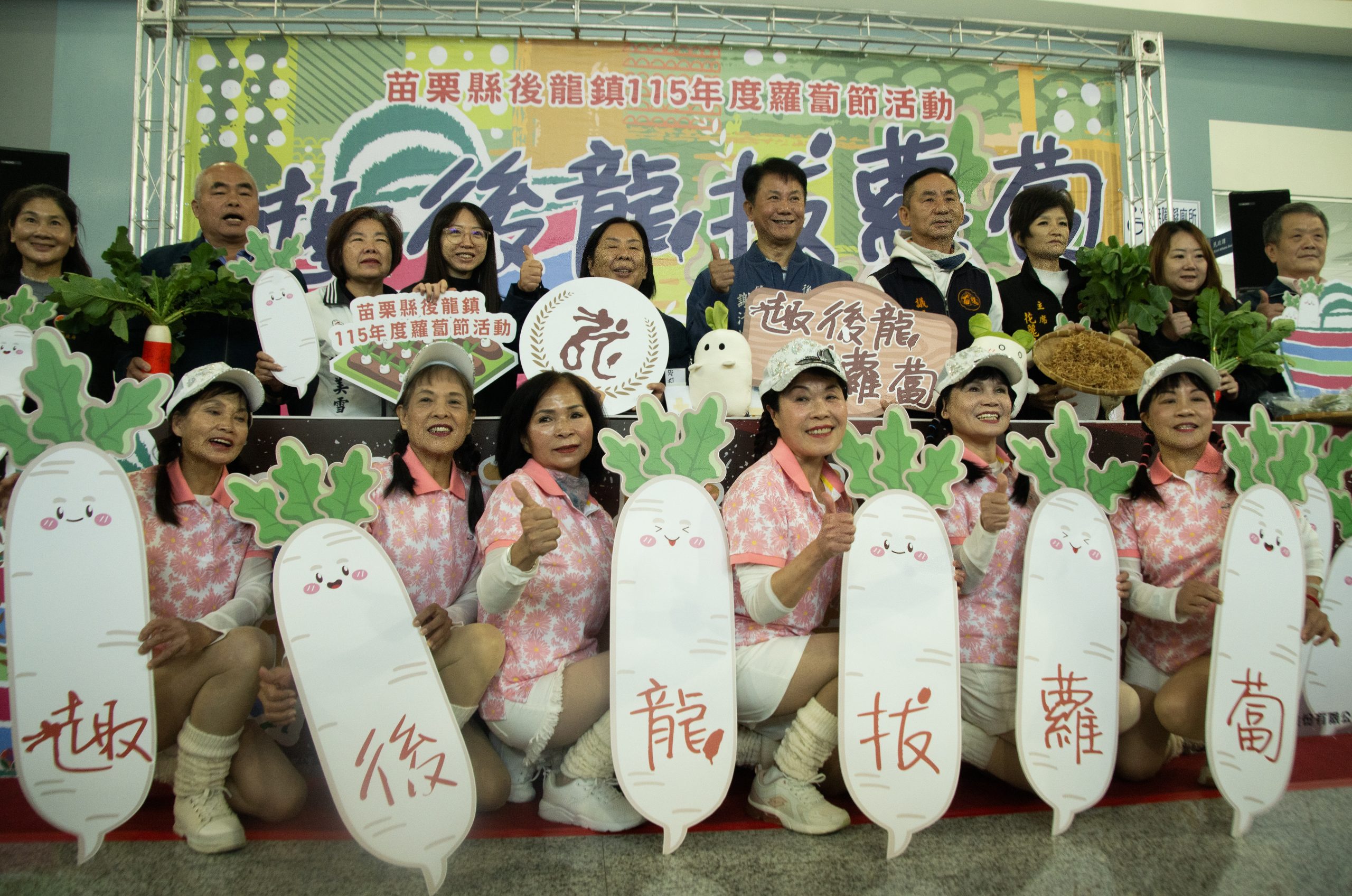 苗栗縣後龍鎮公所將舉辦「115年度蘿蔔節活動」,並於115年01月21日(星期三)上午10時,假後龍鎮公所大廳辦理活動記者會,為系列活動正式揭開序幕。記者會開場特別邀請大庄排舞班帶來精彩演出,展現社區活力與在地特色,同時宣告1/26(一)開放報名共700組,邀請大家1/31(六)一起來~趣後龍.拔蘿蔔、看表演、嚐美食、DIY,體驗農家樂!