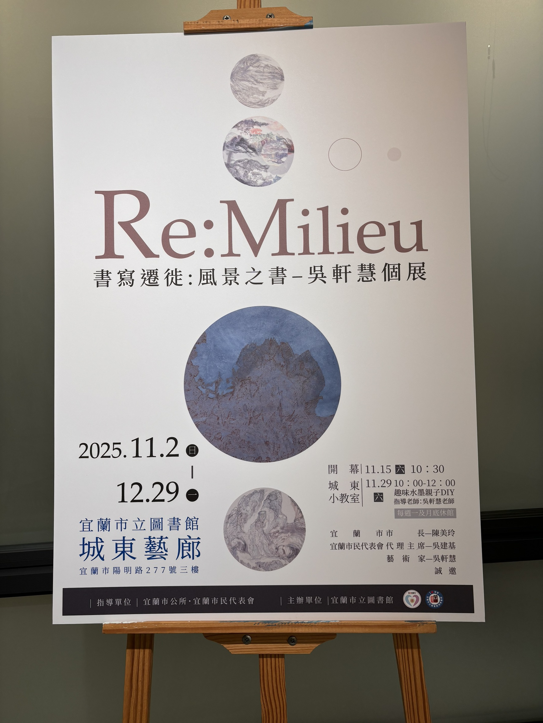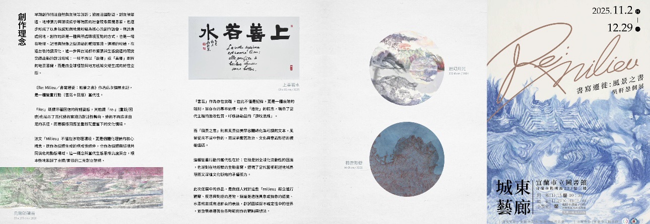 「Re:Milieu書寫遷徙:風景之書」吳軒慧個展,今(2)日起至12月29日止,在宜蘭市立圖書館城東藝廊展出,參展人華梵大學佛藝系助理教授暨中華佛教書畫藝術學會理事長吳軒慧博士,展出的水墨主題作品為《想像之鄉:返鄉視角下的遷徙書寫I,II,III》,以「返鄉」為核心議題,探討在當代全球變動下,地景的懸置與流動性。吳軒慧強調,「返鄉」並非回到「原鄉」,而是一種持續生成的行動與感知,它不指向過去的起點,而是在當下的移動中重塑「家」的意義。