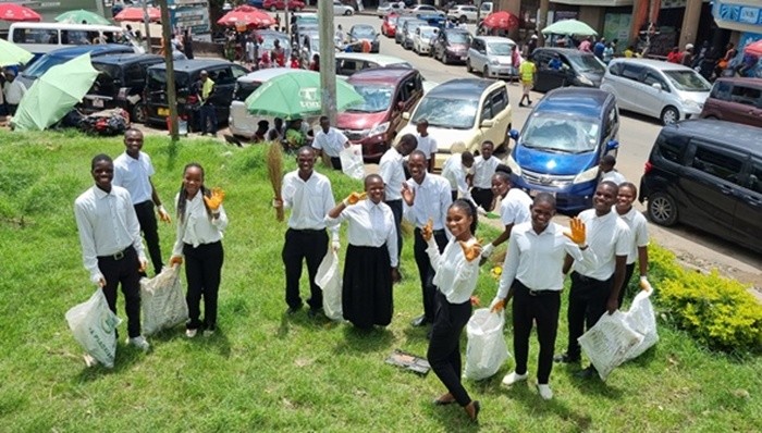 ▲ 新天地馬拉威地區聖徒於1月10日進行「第8屆光與鹽之日環境清潔志工活動」,於市區撿拾垃圾。【照片提供:新天地馬拉威地區】