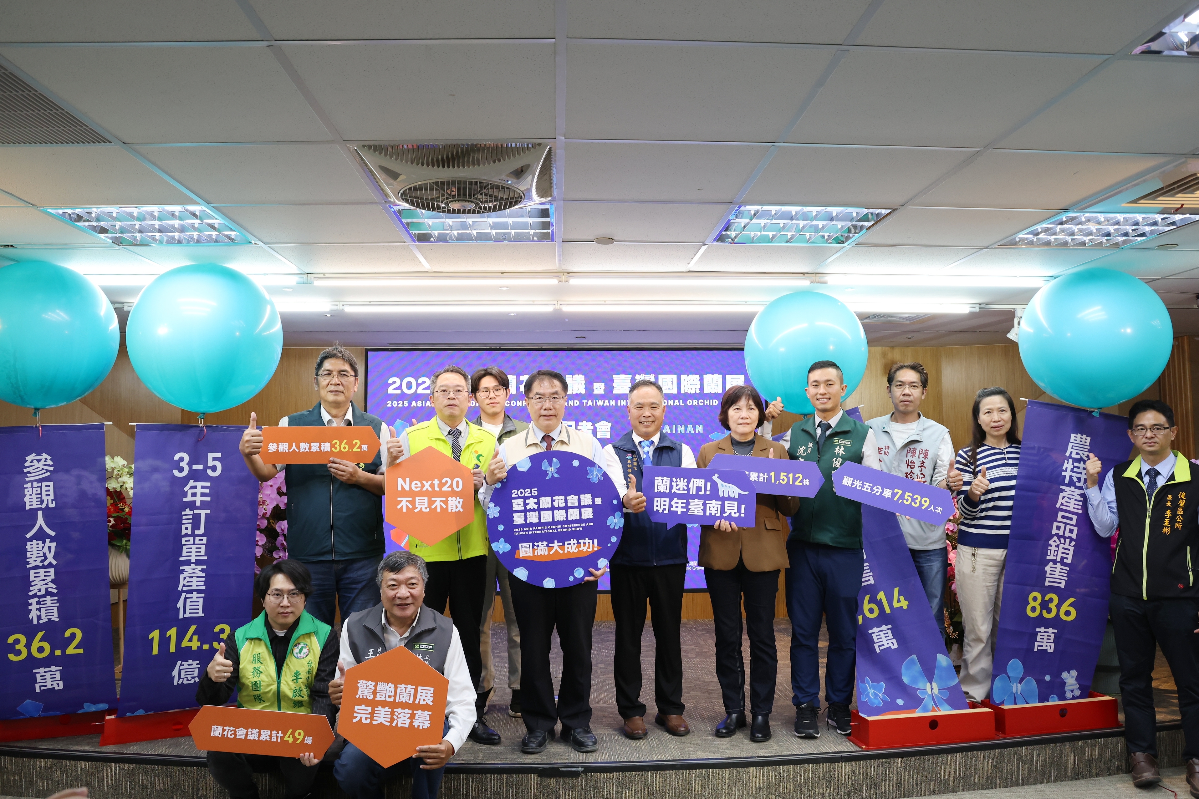 【記者邱仁武/台南報導】2025亞太蘭花會議暨臺灣國際蘭展於3月23日圓滿落幕,今年再次以雙展會模式舉辦,展會期間每日都有萬人參訪,尤其在首日便吸引了超過4萬人次,創下驚人紀錄。今(28)日舉行2025亞太蘭花會議暨臺灣國際蘭展成果發表會,臺南市長黃偉哲感謝代表農業部的農糧署果樹及花卉產業組長蘇登照,社團法人臺灣蘭花產銷發展協會理事長黃文榮、中華民國對外貿易發展協會臺南辦事處主任周秀芬、農業局長李芳林及市議員沈震東等貴賓共襄盛舉。