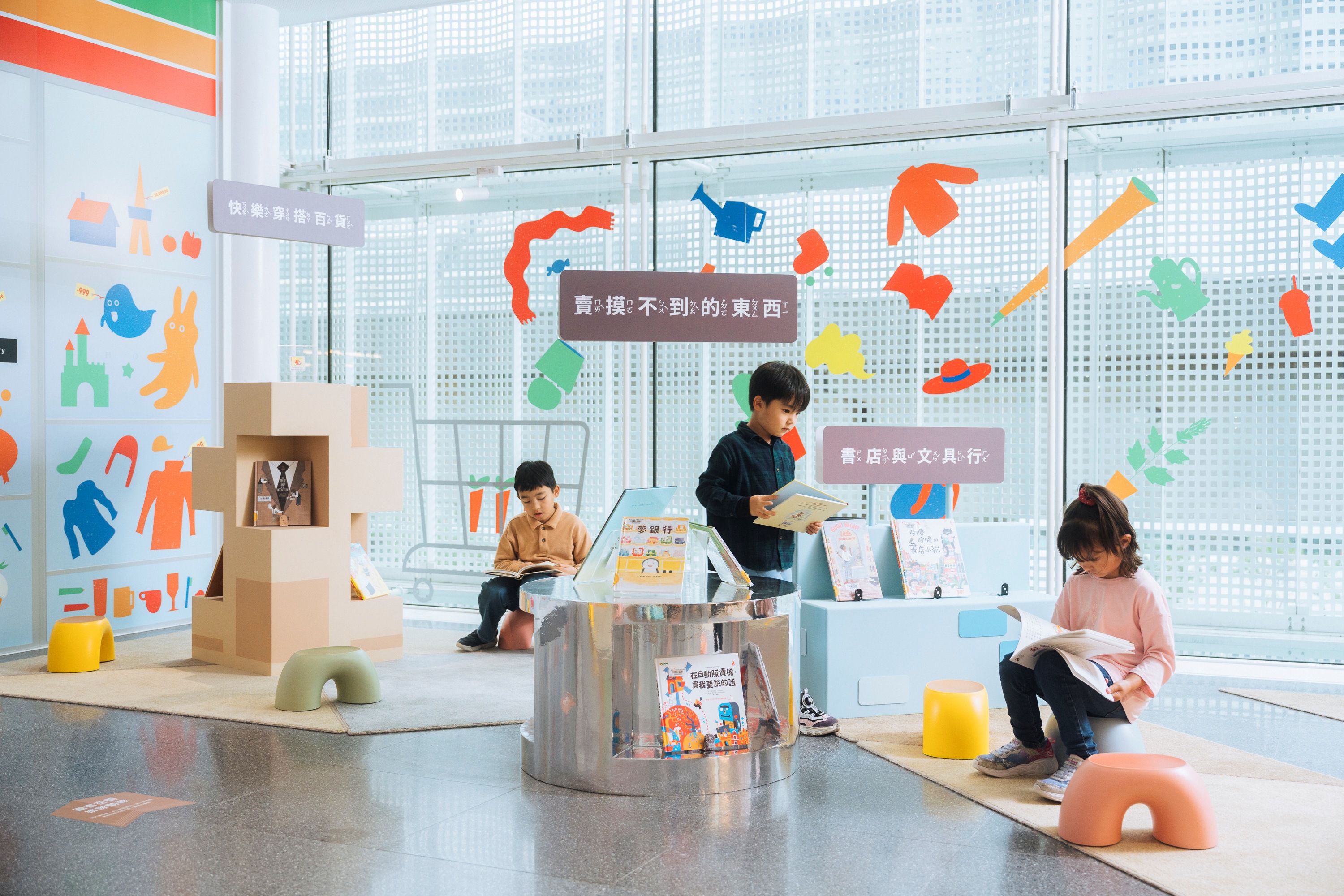 桃園市兒童美術館自2024年開館以來,擁有超過八千冊繪本書籍,透過主題性選書策展,拉近繪本與社會大眾的距離,並鼓勵兒童從小培養閱讀興趣。2025年春季推出的主題書展「什麼都有便利商店」,精選48本與「販售」各種物品有關的繪本,內容涵蓋賣美食、快樂穿搭百貨、書店與文具行、賣摸不到的東西、(應該)什麼都賣、生活雜貨小鋪等精選主題。本次展出繪本不僅有實用的知識、獵奇的新奇內容,還有些讓人愛不釋手的故事,滿足觀看者的各種需求。為提升閱讀樂趣,現場更設有「今天適合買什麼」互動裝置,觀眾可透過趣味互動,探索今天適合閱讀哪一類繪本,增加閱讀的趣味性和參與感!