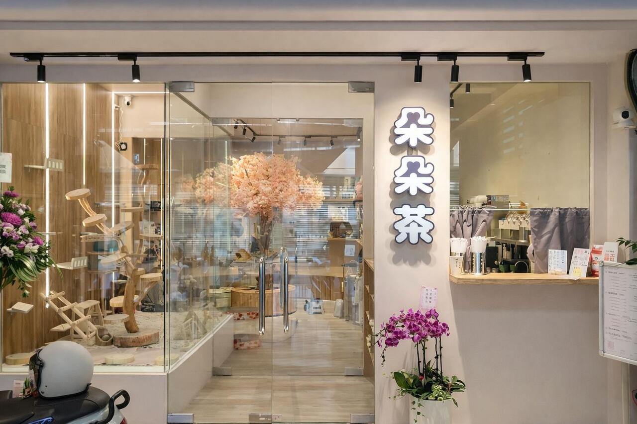 A:雖以外帶與外送為主,《朵朵茶》的空間仍以木質調與柔和光線呈現,搭配玻璃隔間的動物觀賞區,讓顧客在取飲或短暫停留時,也能感受到溫柔安靜的氛圍。不少人會在不打擾動物的前提下,拍照記錄與龍貓、貓咪相遇的片刻,使這裡逐漸成為被分享的台中北區打卡茶飲之一。
