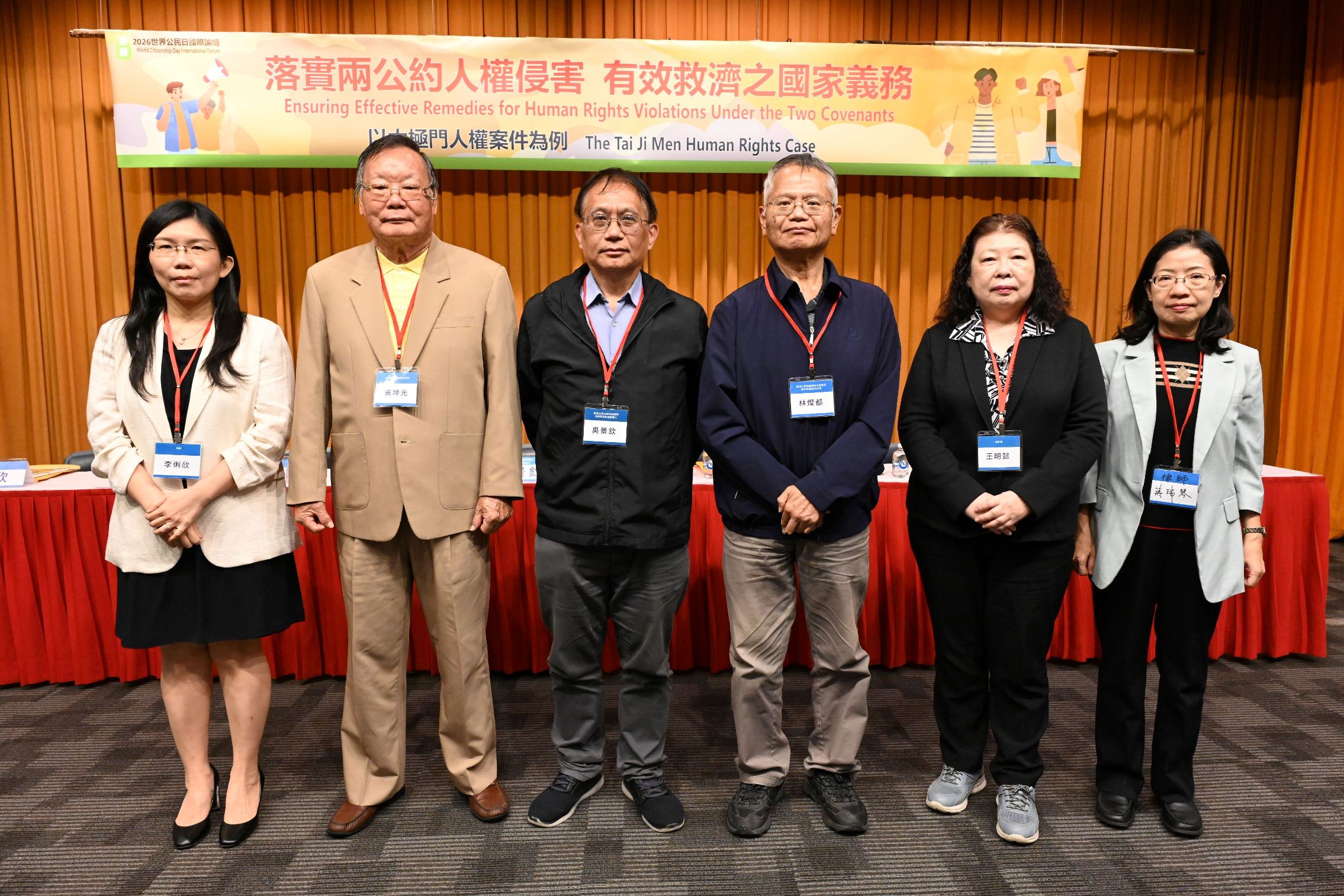 P1:4月1日聯合國NGO世界公民總會等單位,在臺大應力館舉辦2026年世界公民日國際論壇「落實兩公約人權侵害有效救濟之國家義務──以太極門人權案件為例」,圖為第三場專家學者合影。