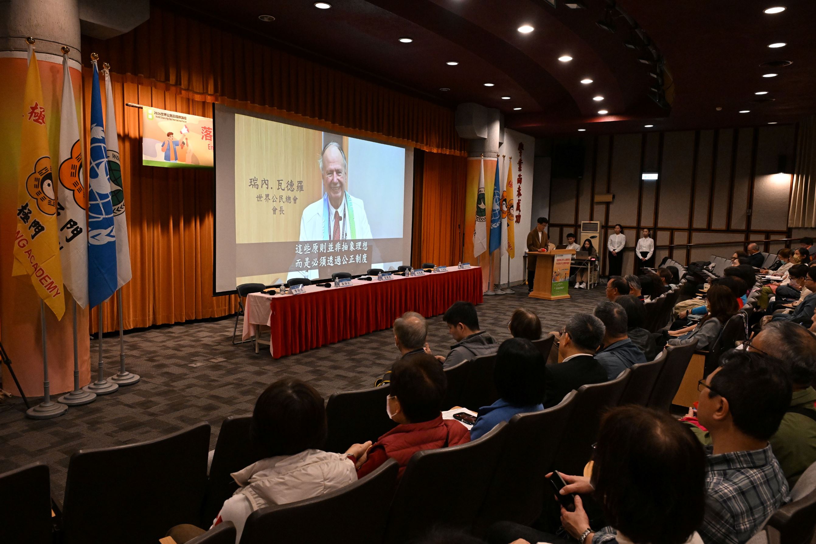 P2:聯合國NGO世界公民總會主席Dr. Rene Wadlow透過影帶致詞。