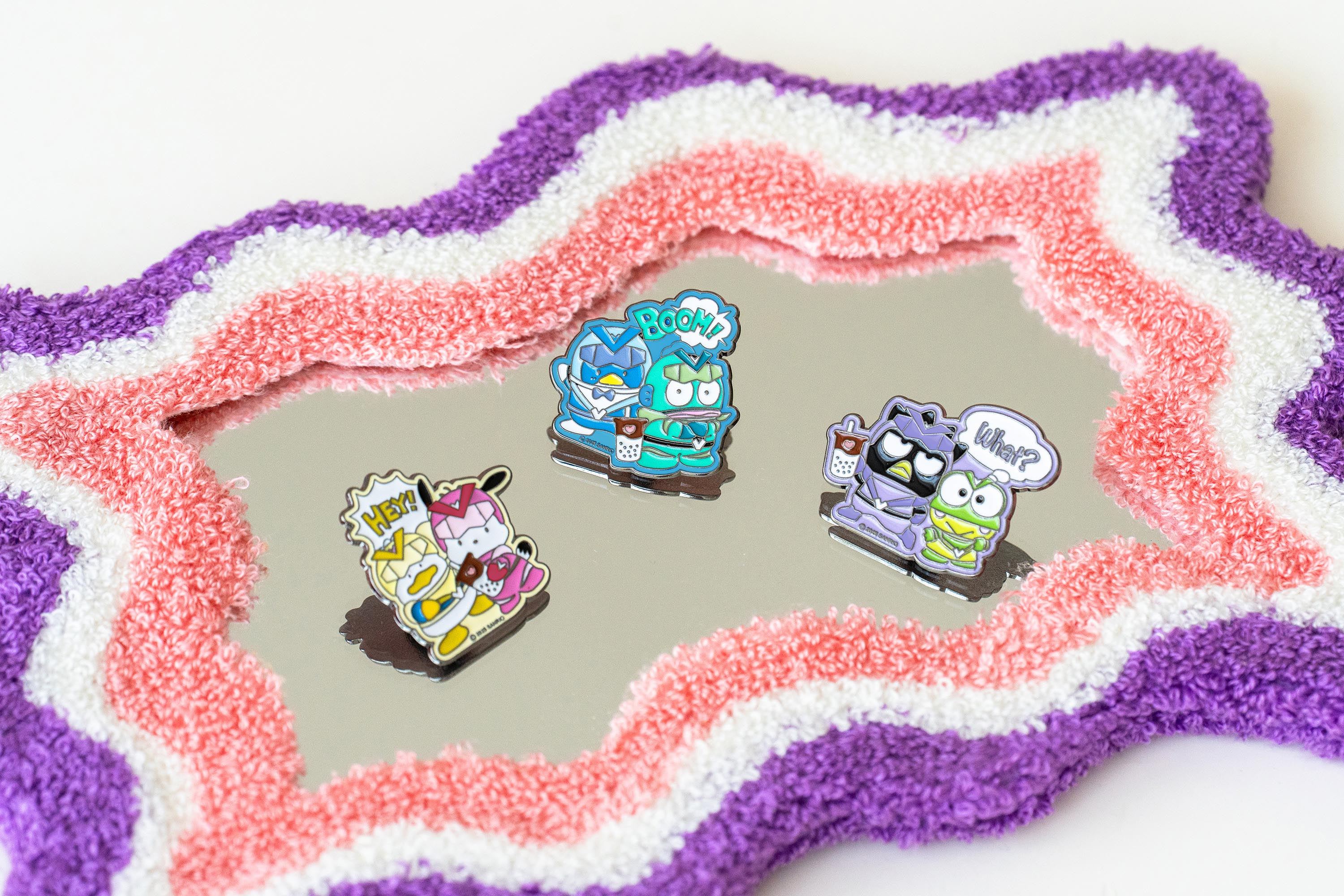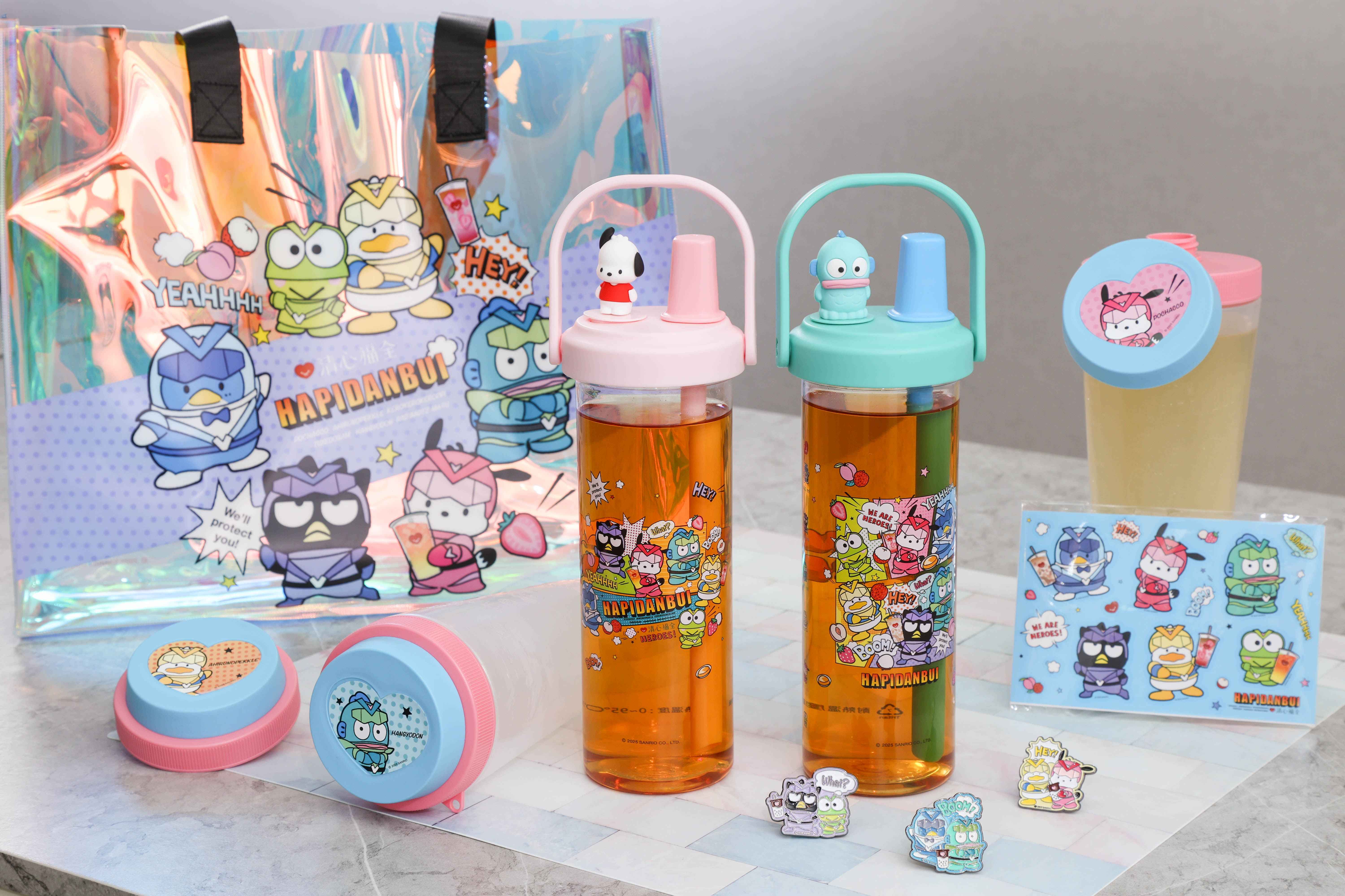 圖說:清心福全X三麗鷗男團「HAPIDANBUI」聯名加價購商品全系列登場,獨家炫彩提袋設計,及金屬造型胸針增添你的穿搭趣味!(資料來源:清心福全)