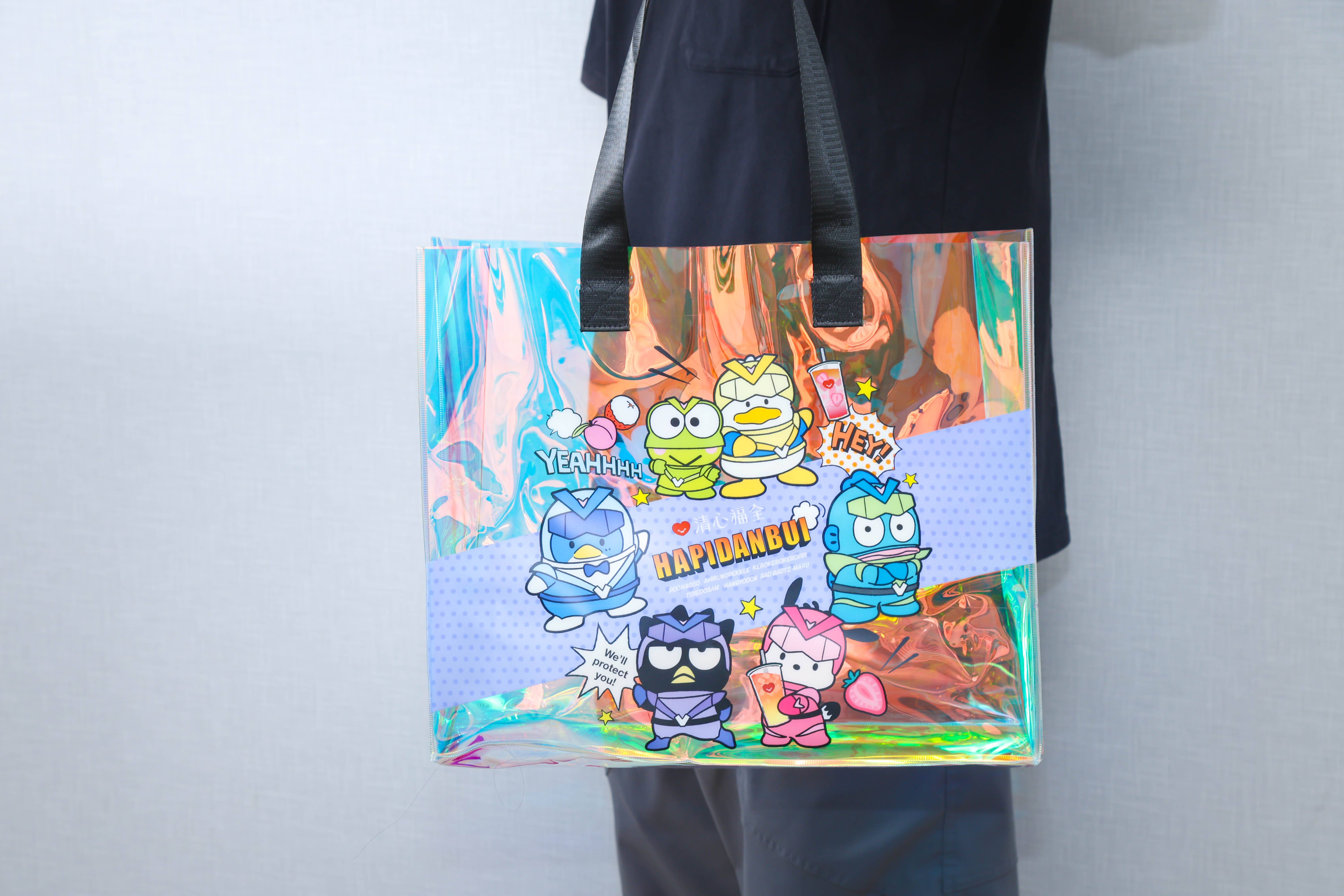 成立至今38週年的清心福全,為了與大家一同重溫懷舊的美好時光,特別聯手同為許多人童年回憶的三麗鷗明星——山姆企鵝、貝克鴨、人魚漢頓、帕恰狗、大眼蛙及酷企鵝所組成的男團「HAPIDANBUI」,推出多項聯名商品。主打兼具環保與美感的「炫彩提袋」,採用透明鐳射防水材質,印上男團帥氣的合體圖樣,不論在哪裡都耀眼吸睛。大容量設計即使是A4資料也能輕鬆放入,讓你一個提袋就能容納所有隨身物品,輕鬆出門。自4/18上午11時起,凡於全台清心福全門市購買任四杯飲品,加價99元即可預購1個,這麼划算的優惠絕對不能錯過!