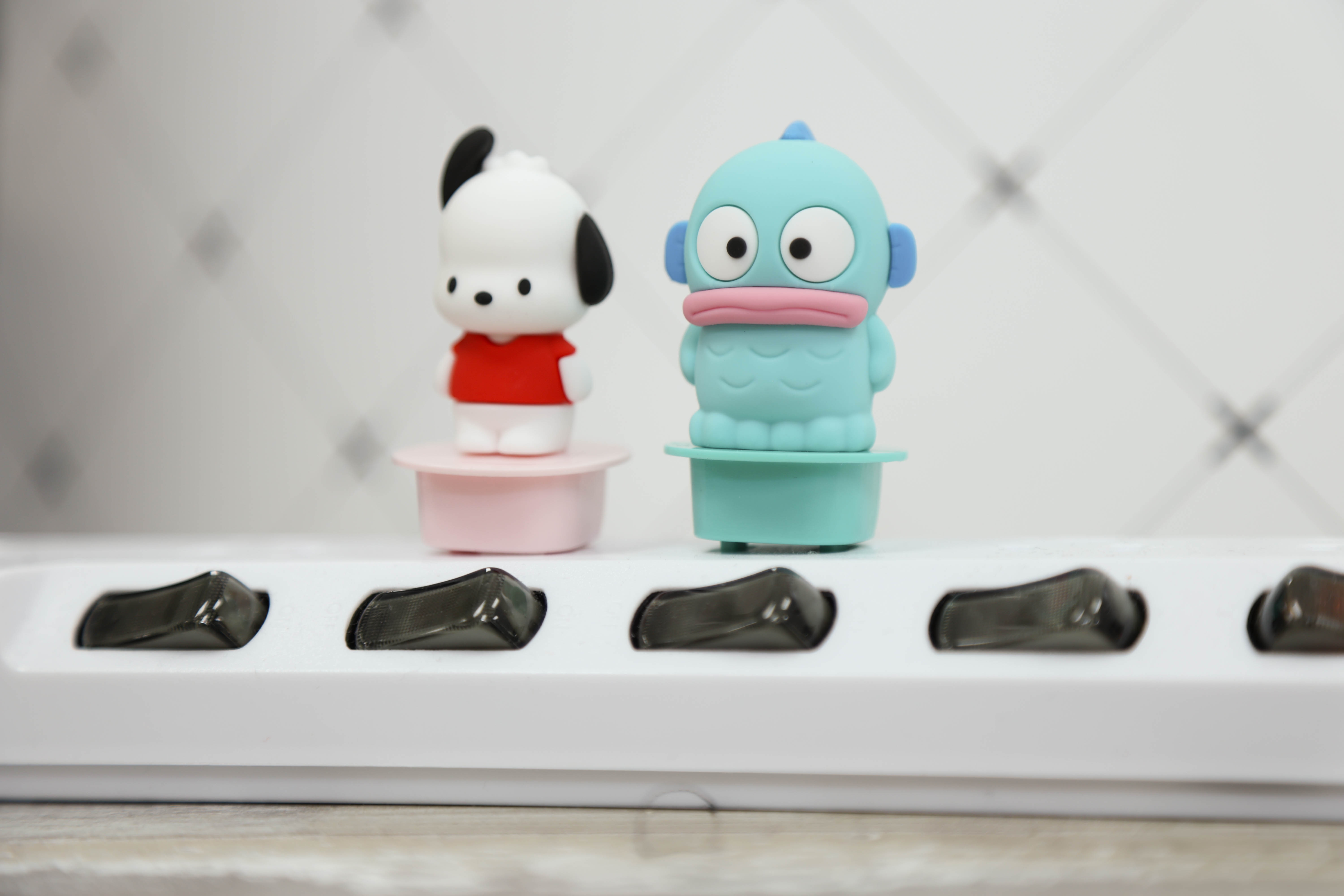 圖說:聯名Tritan環保瓶上的帕恰狗與人魚漢頓公仔,可以當成插座安全蓋,站在辦公室桌上,連上班時間都超級療癒。(資料來源:清心福全)