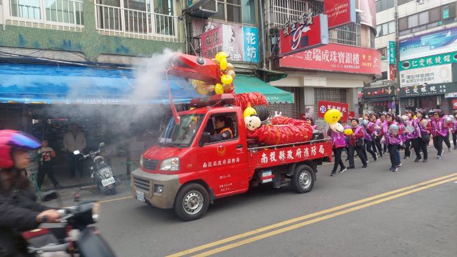 在地的草屯消防隊也不妨多讓,利用消防搶救器材排煙機的排煙軟管加上宣導用之塑膠壓克力看板,拼湊出蛇年行大運之靈蛇。為了讓靈蛇能栩栩如生,在採街時,由製煙機上噴灑出陣陣餘煙,讓靈活靈現的大紅蛇穿梭在草屯鎮的大街小巷。