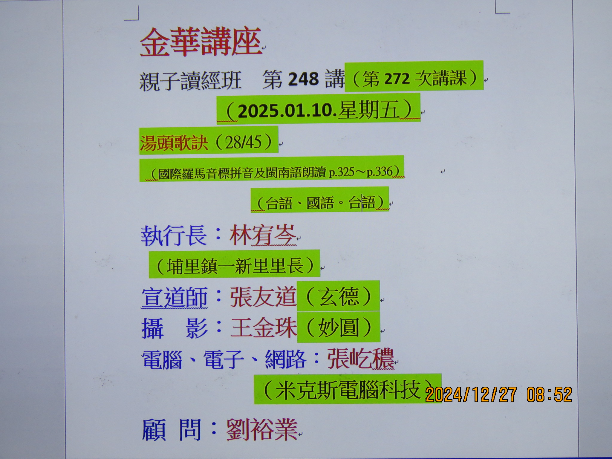 金華講座親子讀經班暨成人讀經班 講經通告網址 1