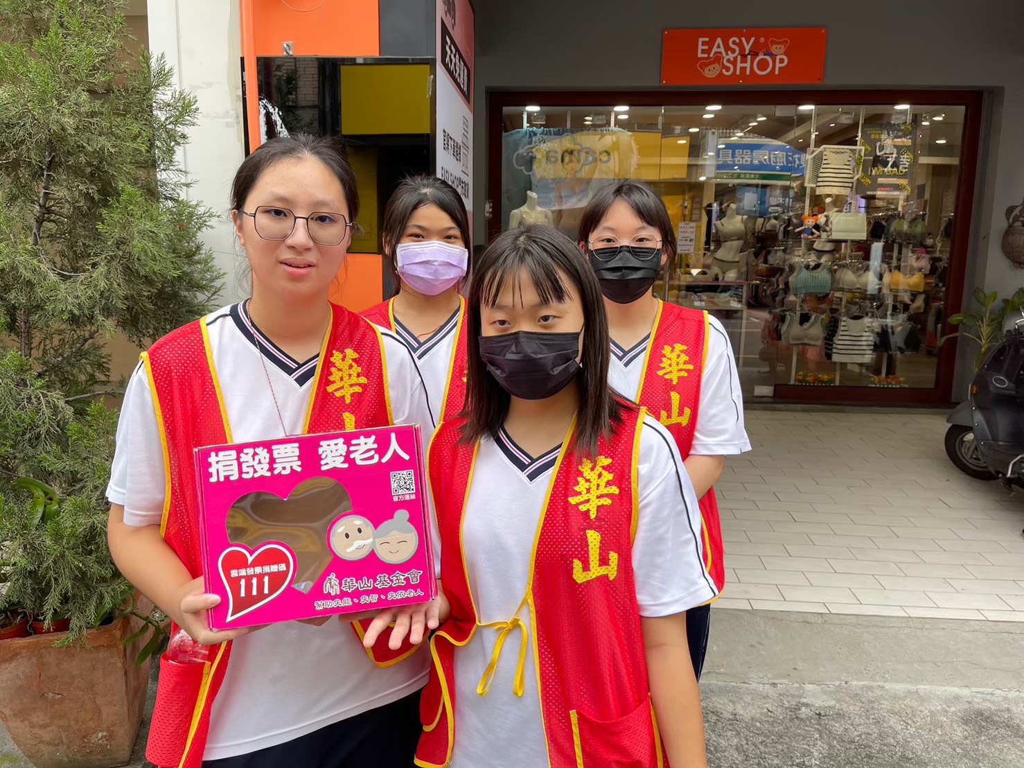 圖二南投高商同學與華山基金會合辦發票募集活動幫助弱勢團體。(南投高商提供 )