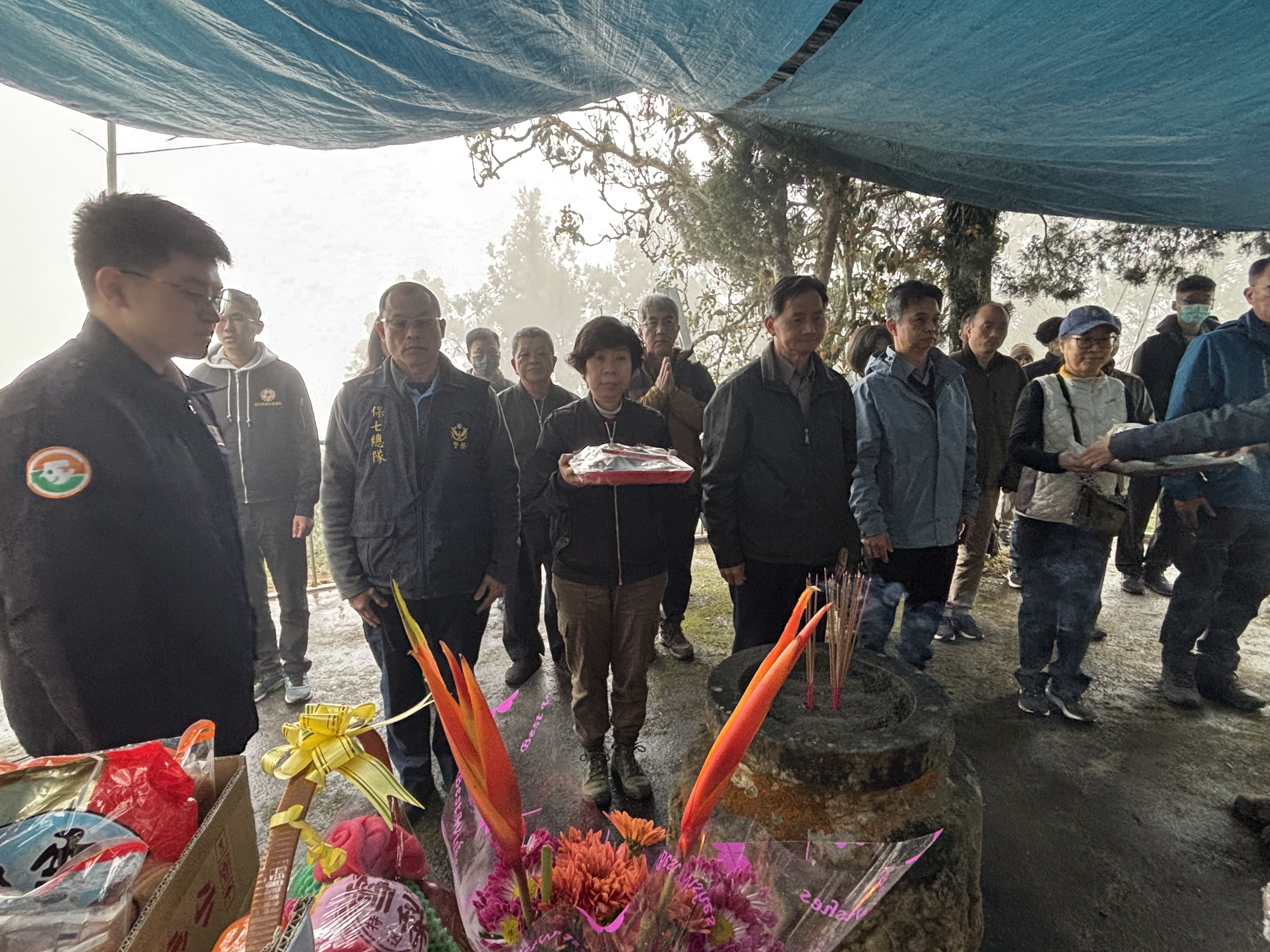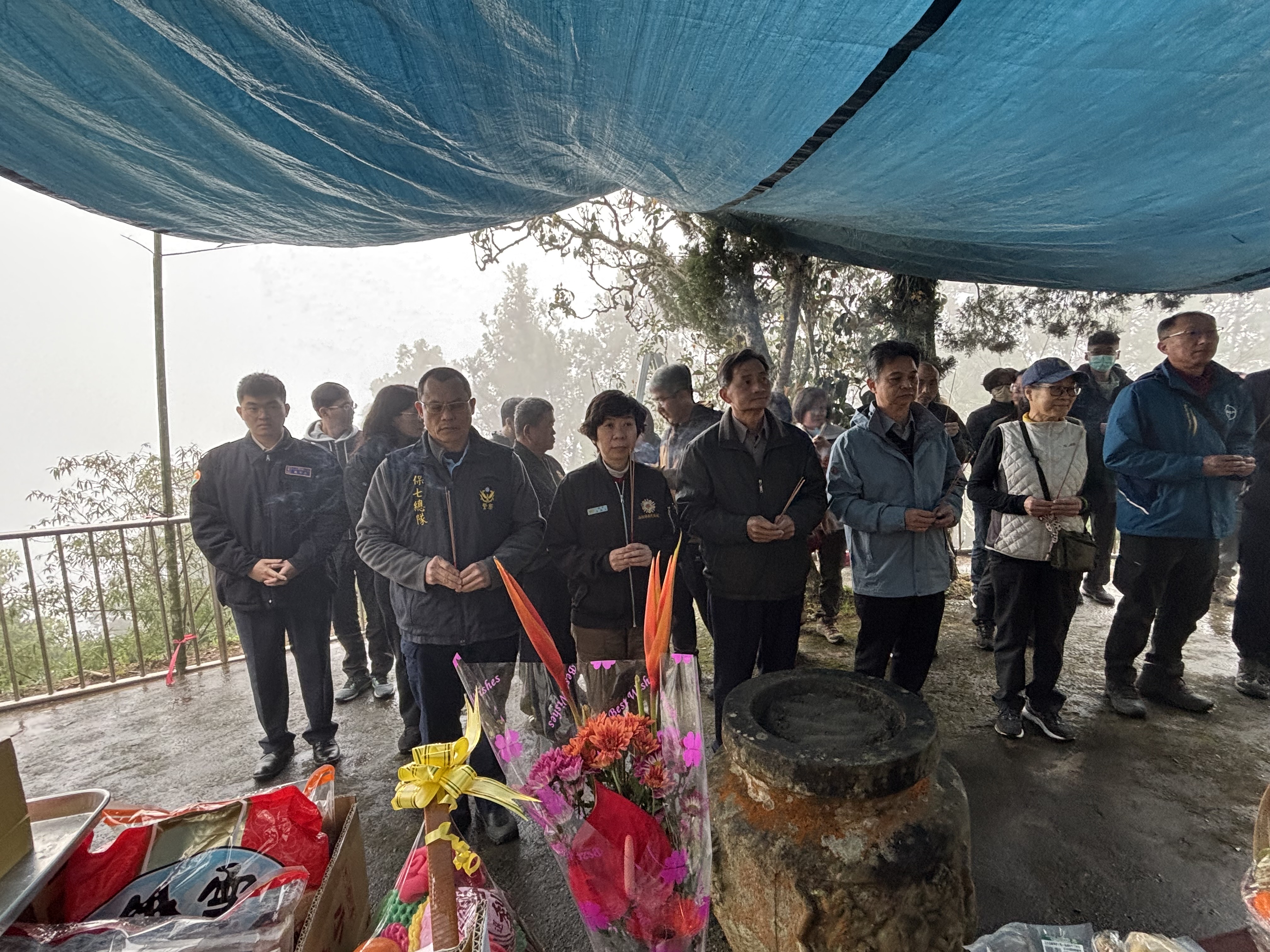 南投縣榮民服務處今(17)日上午,在「水里工作站人倫分站」的林業榮民殉職紀念碑前舉行聯合春祭儀式。此次儀式由南投縣榮民服務處處長王怡文帶領,並與農業部林業及自然保育署南投分署分署長李政賢、內政部警政署保安警察第七總隊第六大隊大隊長盧世哲等相關人員共同參與,旨在悼念那些在林業建設過程中犧牲的榮民英雄,並向他們為國家與社會發展所做出的貢獻表達崇高的敬意。