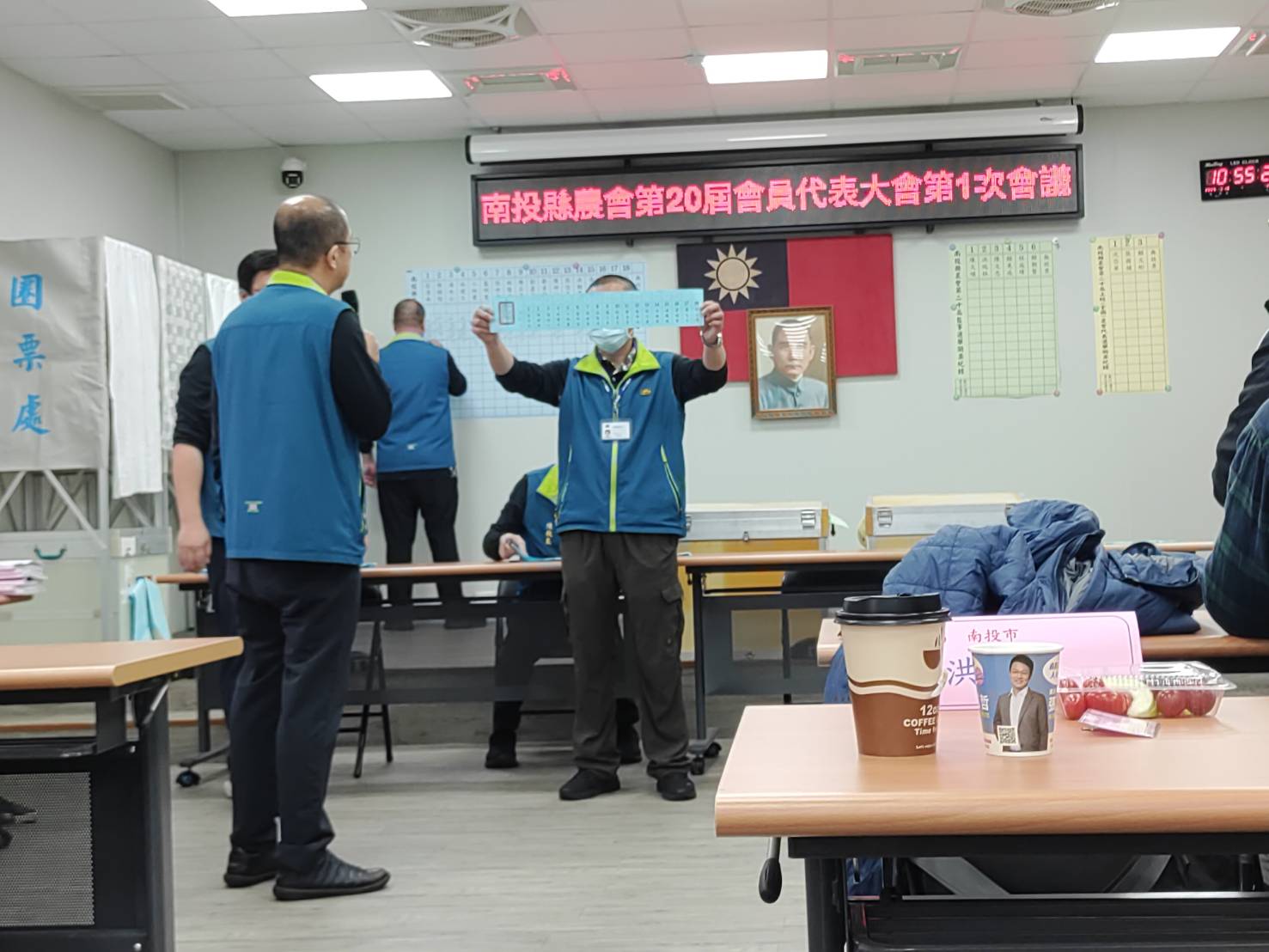 縣農會說明, 南投縣農會會員代表大會計有50位,今(18)日踴躍出席選舉第20屆理監事及上級代表。合計:理事應選15席,登記:有18席。選舉結果:江林秉等15席當選,候補理事3席。監事當選陳文忠等5席。上級農會會員代表當選賴文彬等3席。並依規定將於3/26日召開理監事會議,選舉理事長、常務監事,並由理事會聘任總幹事等三巨頭。