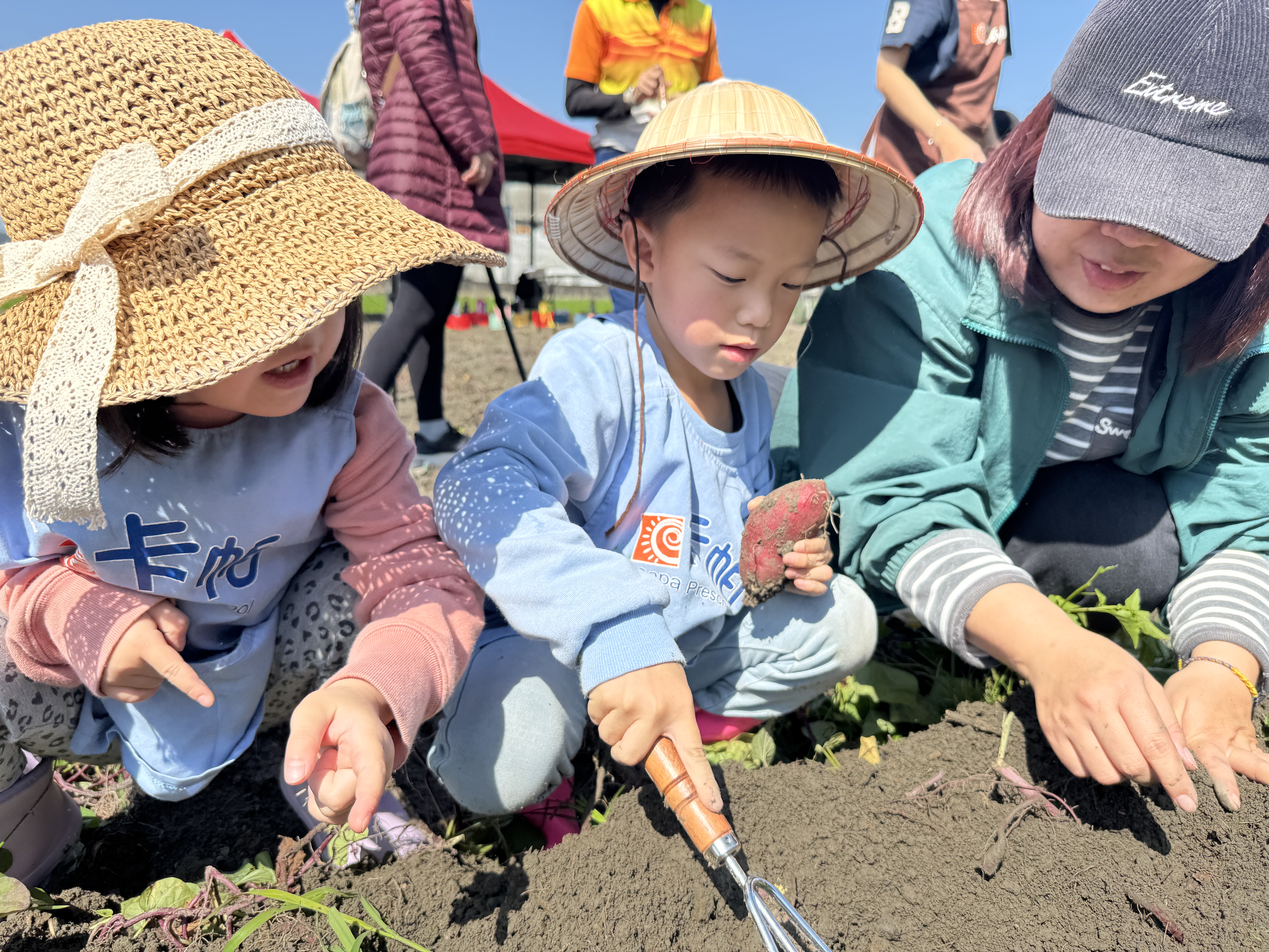 這次活動安排了不同年齡層的專屬體驗,讓每位參與者都能收穫滿滿!3月21日場次迎來活力滿滿的卡帕及幼幼兒園30名小朋友,透過輕鬆有趣的方式,學習友善耕作與生態環境,還能親手採摘地瓜、體驗烤地瓜樂趣,最後品嚐自己參與製作的地瓜美食,讓小朋友們吃得開心、學得快樂!
