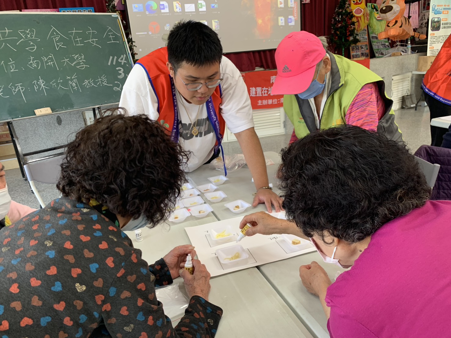 大學與南投縣政府衛生局合作,共同辦理「青銀共學 食在安心」活動,並於3月26日(三)於草屯鎮山腳社區進行實作。這個活動是南投縣政府衛生局的檢驗科科長吳玲玲的創新想法,她認為社區長者普遍對食安問題一知半解,故希望透過南開科技大學社會責任計畫,與師生一起進入社區,關心長者的食安問題,並協助他們學會食安檢測技能。