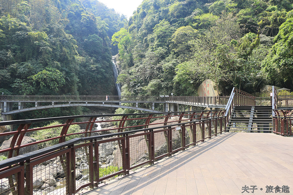 南投瑞龍瀑布是加走寮溪的最後一個瀑布,有「竹山第一美瀑」之譽。沿著無障礙高架步道走過瑞龍吊橋,一座高架觀景平台正前方能全覽加走寮溪峽谷之景,側面可遠望瑞龍瀑布整體之美,瀑布前方一座跨河道的「空中觀瀑平台」是瑞龍瀑布園區的亮點,空中觀瀑平台與瀑布只有咫尺距離,溪水由峭壁傾瀉而下,水勢奔騰咆哮喧聲如雷,空氣中充滿負離子能量。