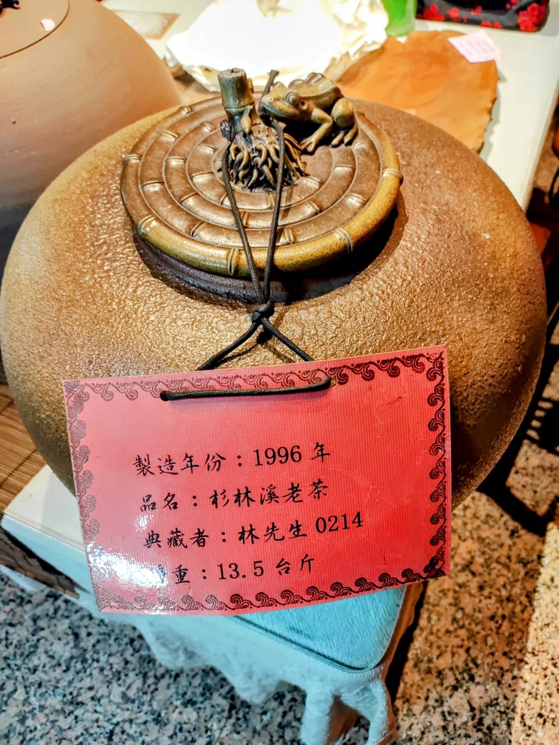 圖三製作1996年份的仙品茶銀行存茶甕。(記者林凌霄攝 )