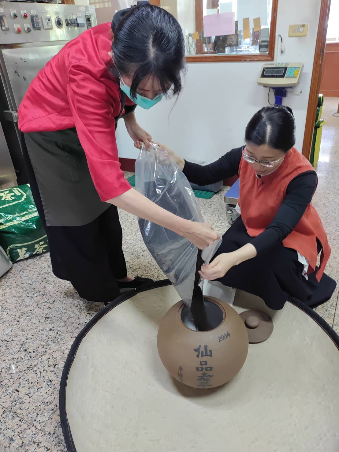 圖二仙品茶銀行員工為客戶存茶裝甕。(記者林凌霄攝 )