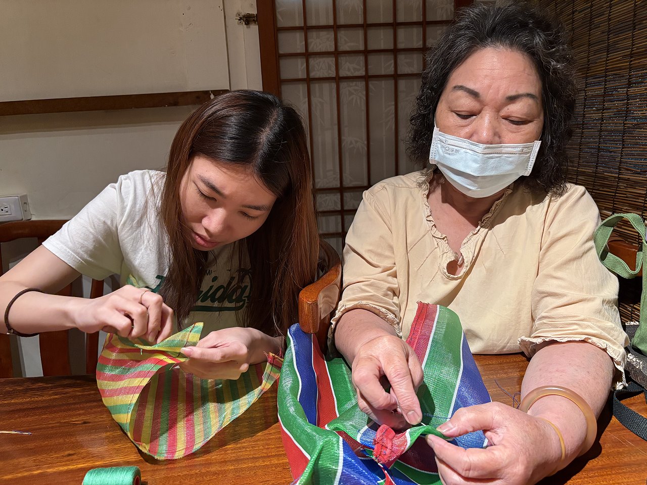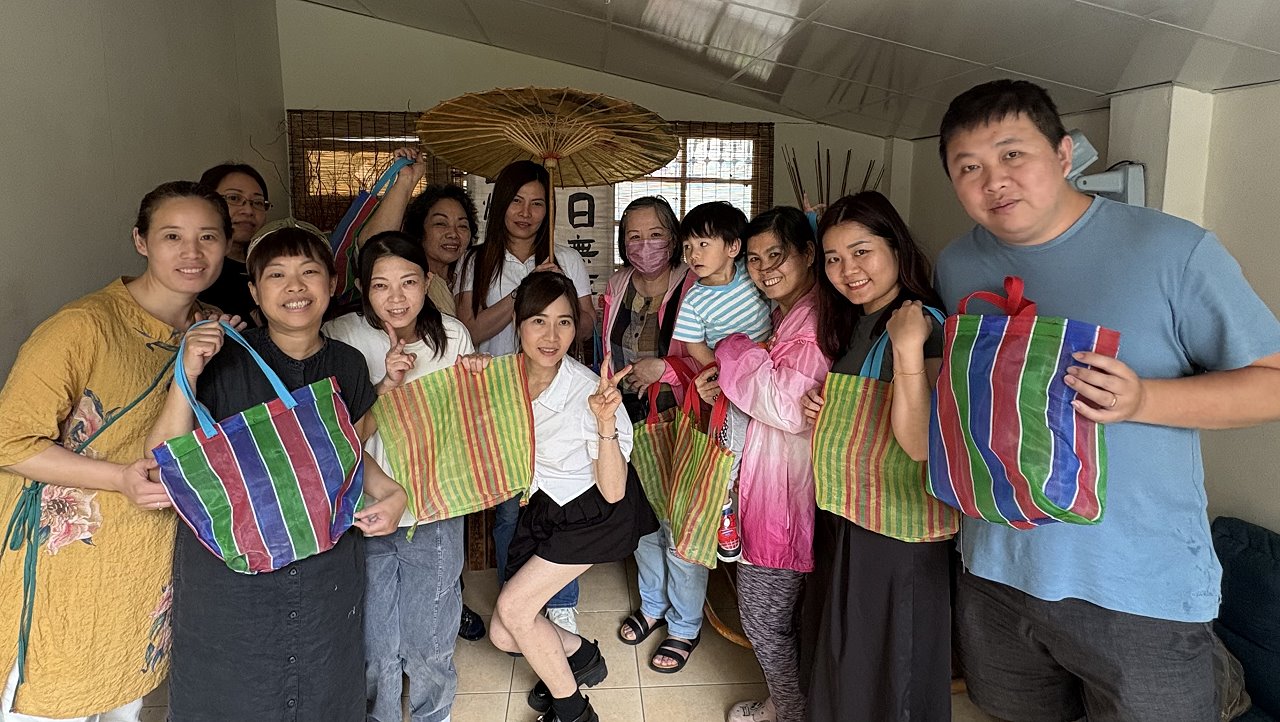 在場的新住民朋友對茄芷袋十分感興趣,張勤和大家一起透過手作實踐臺灣先民的智慧,並相邀一起提自己手作的茄芷袋上街炫臺味。嘉義市服務站主任黃艷薰表示,透過製作茄芷袋活動,讓新住民對臺灣在地文化留下深刻印象。