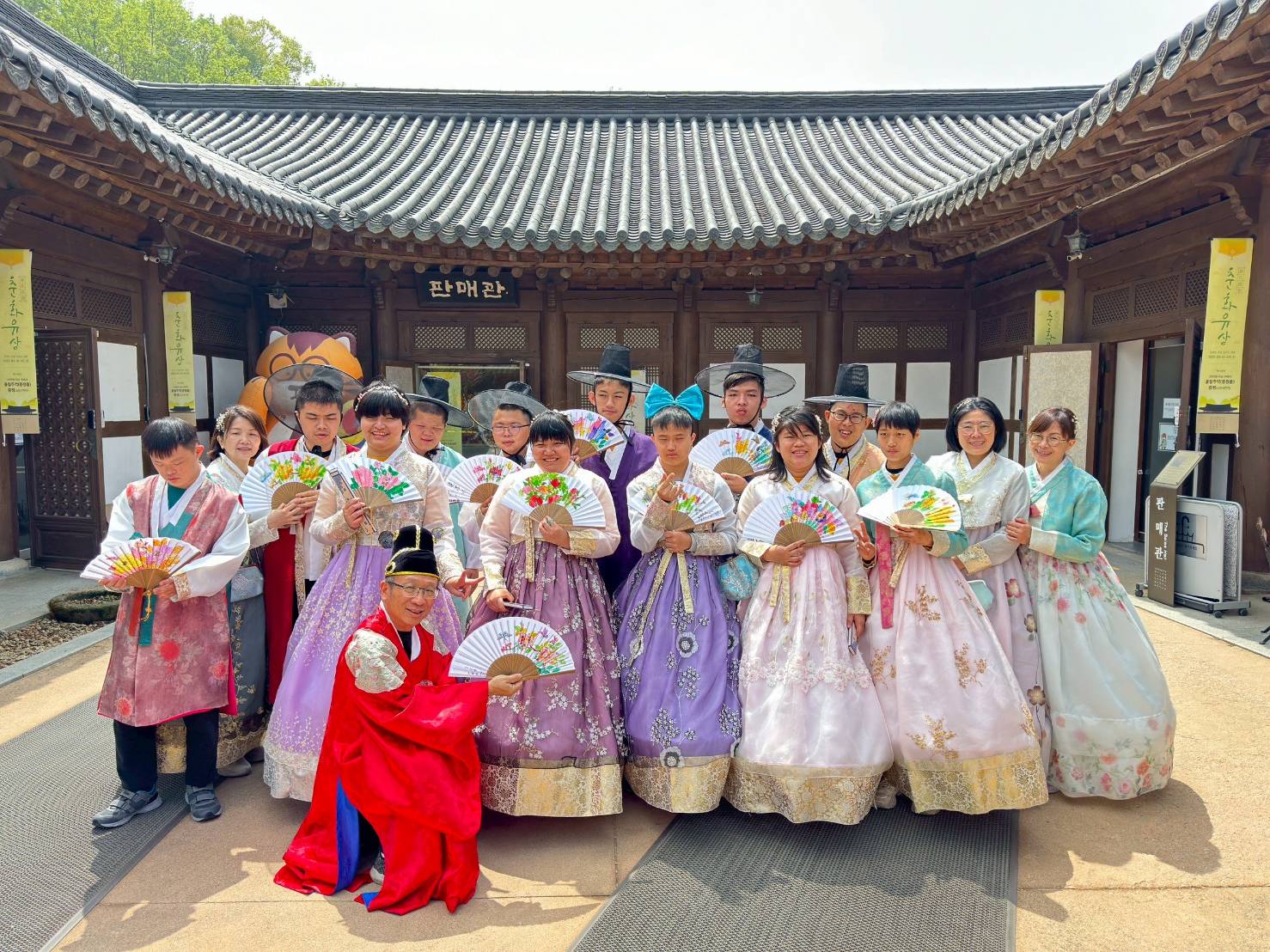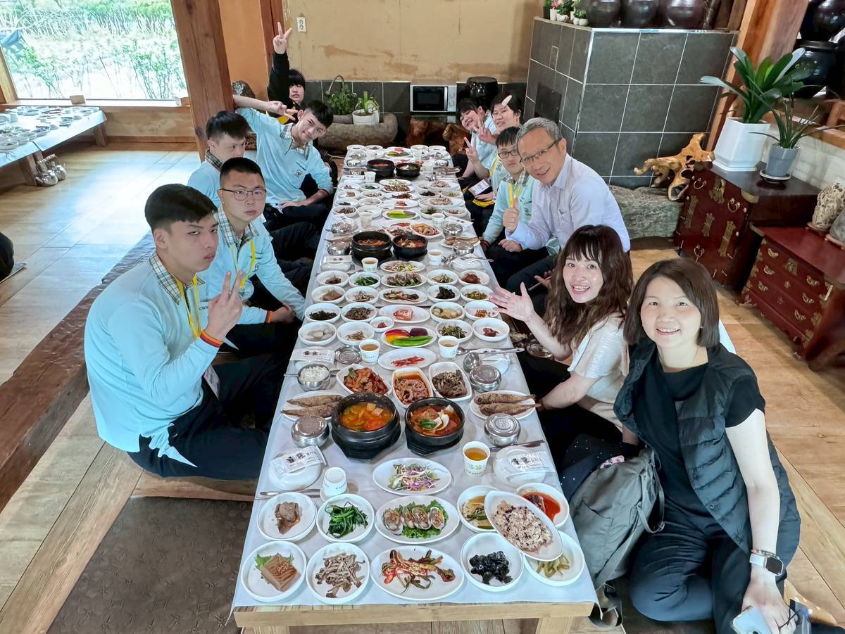 在韓國期間,學生們參訪了淳昌傳統辣椒醬村與全州韓屋村,親手製作辣醬泡菜並試穿傳統韓服,體驗當地濃厚的傳統文化。此外,也前往首爾著名景點如景福宮、青瓦台等,感受韓國悠久的歷史與現代文化的交融。